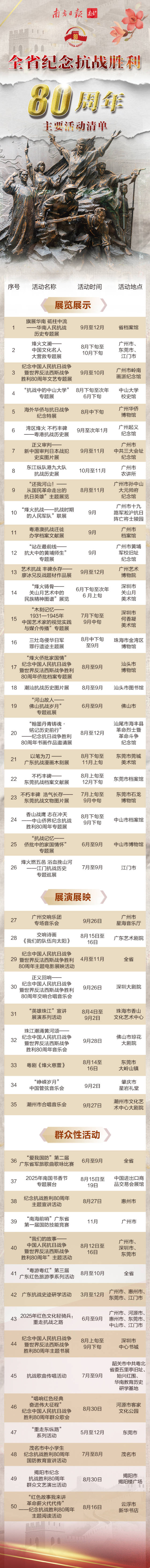 主要活动清单来了!广东围绕纪念抗战胜利80周年开展系列活动