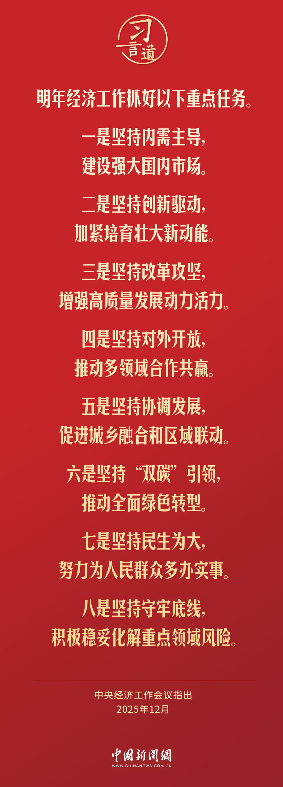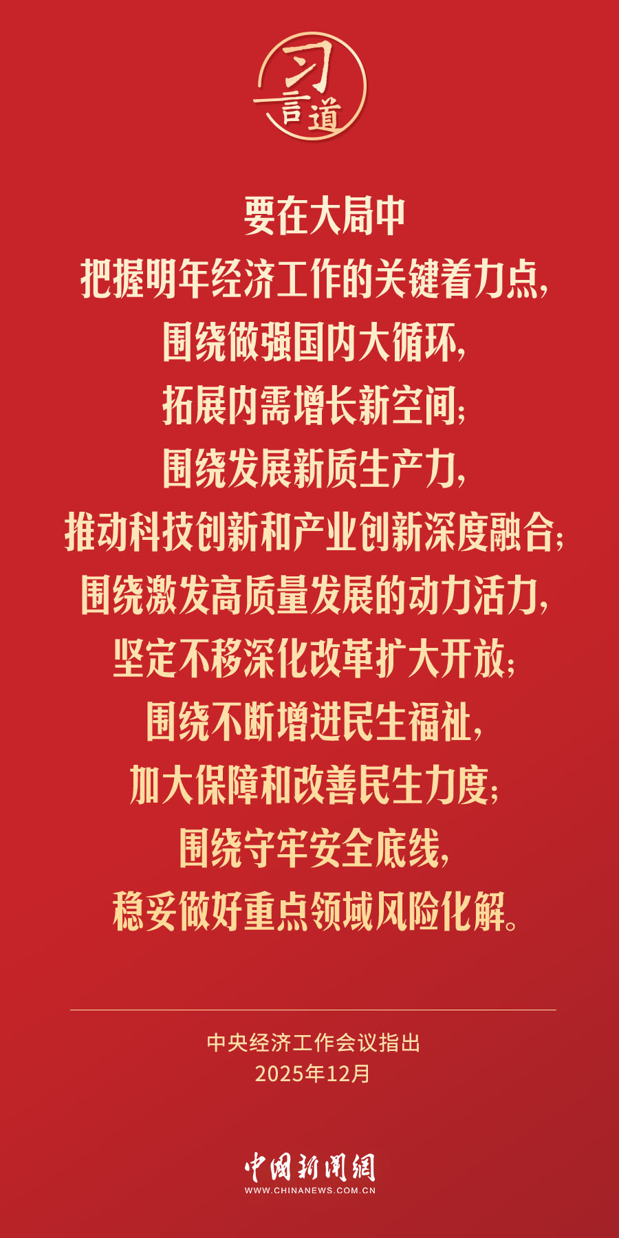 中央经济工作会议12月10日至11日在北京举行。中共中央总书记、国家主席、中央军委主席习近平出席会议并发表重要讲话。会议指出——