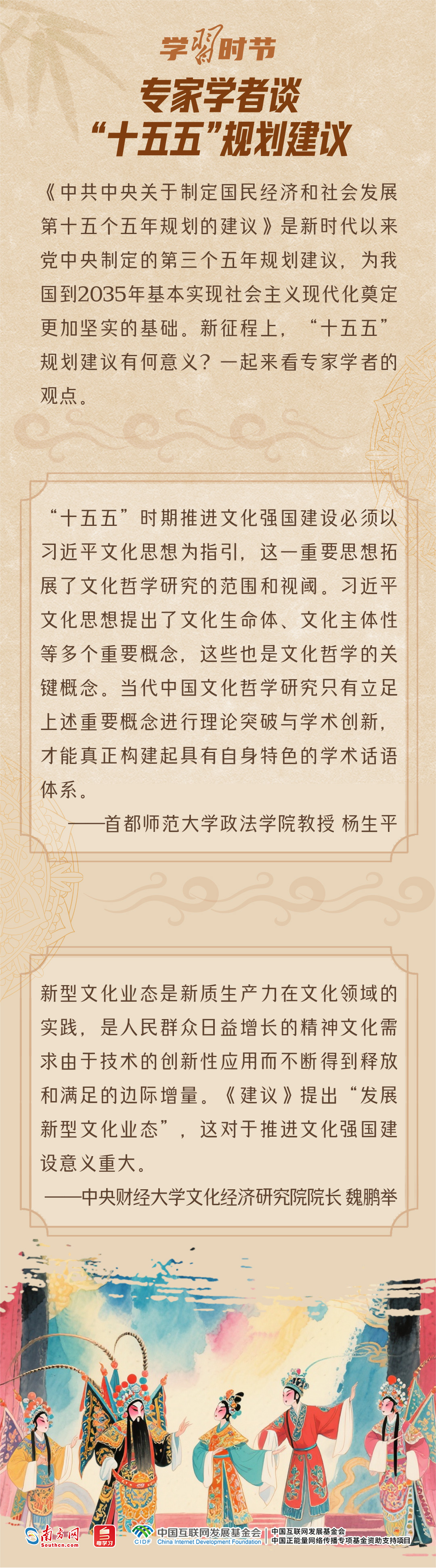 文化繁荣兴盛是中国式现代化的重要标志。党的二十届四中全会通过了《中共中央关于制定国民经济和社会发展第十五个五年规划的建议》(以下简称《建议》),提出“十五五”时期“社会文明程度明显提升”的主要目标,对“激发全民族文化创新创造活力,繁荣发展社会主义文化”进行专章部署,为扎实推进文化强国建设指明方向。