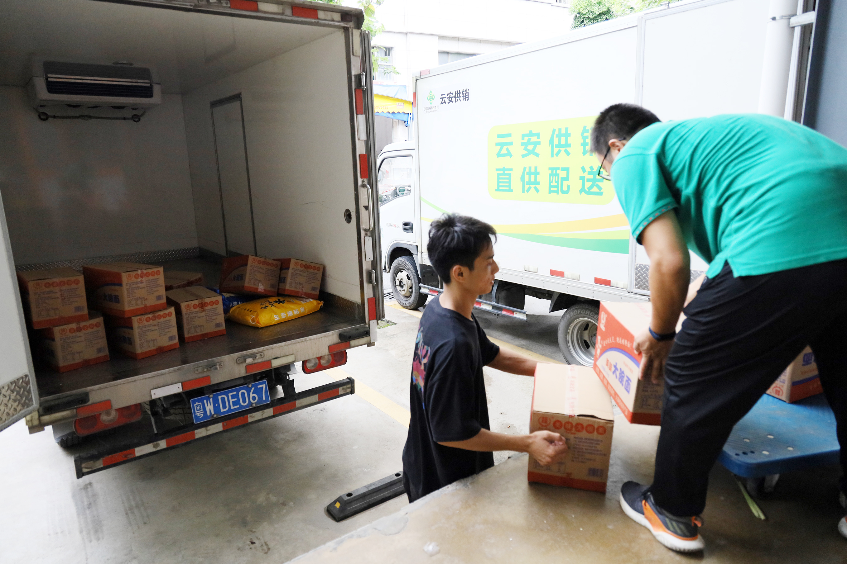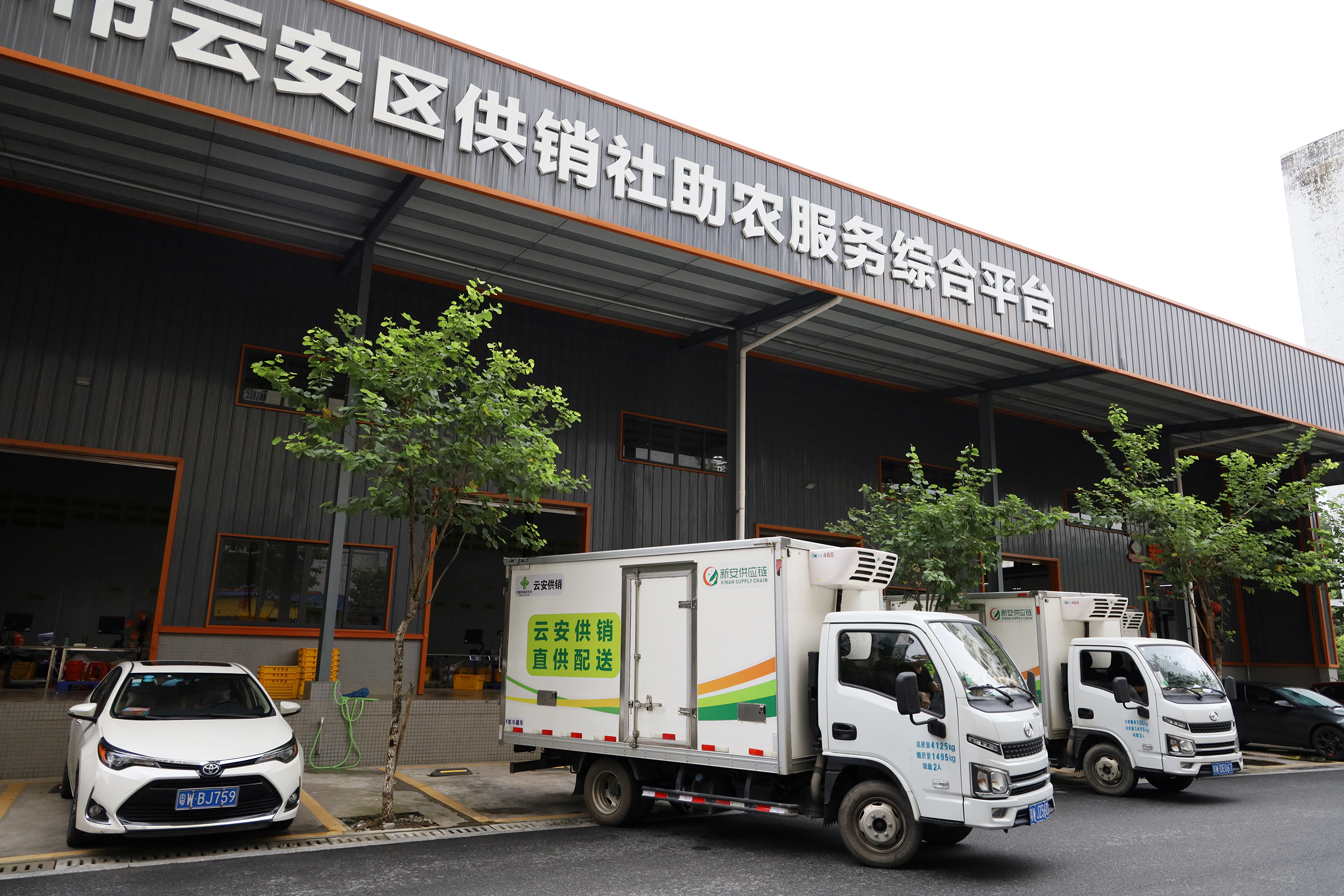 8月17日大清早,云安区白沙塘综合行政区宝安道,一条安静的社区小街,崭新的云浮市云安区供销社助农服务综合平台(农产品直供配送中心)前,停了一排小卡冷藏车,平台大厅,来自本地区各种养基地的蔬菜瓜果、水产、禽畜肉类等被细致分拣包装、核单打包,装到冷藏车上,“云安供应产品”就这样走上云安人的饭堂餐桌。