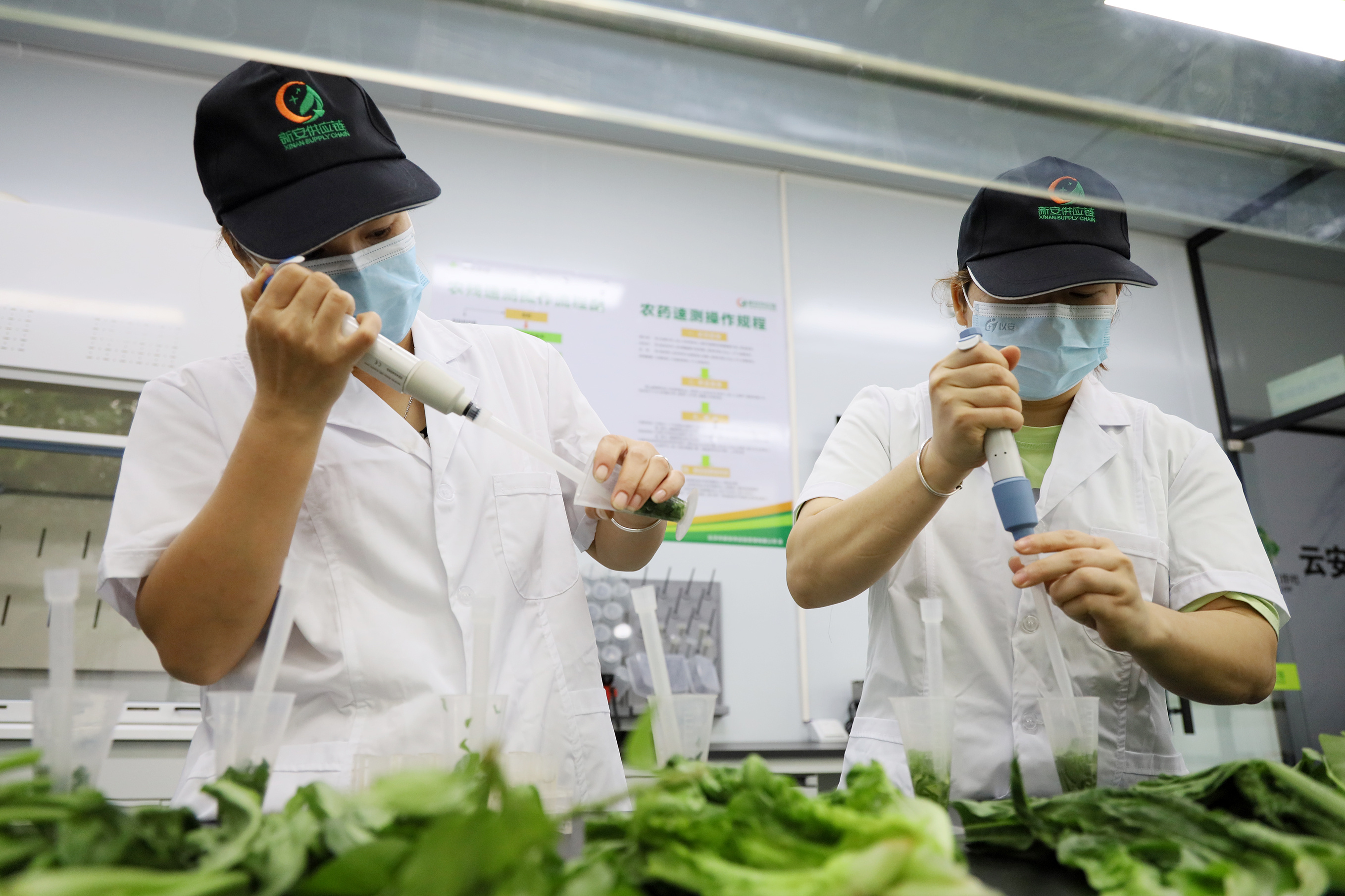前端惠农助农,终端惠民为民。在配送中心,有农药残留检测实验室,每天购销的蔬菜、瓜果抽样检测并48小时留样,检测数据向客户公开;肉类采购必须有检验检疫合格证明。对食品安全检测不过关的供应基地,云安供销社实行“一票否决”、不再对接。在配送价格上,配送中心参照发改部门公布的“菜篮子”价格定价并适当下浮,同时邀请客户代表参与价格形成机制的调研监督。