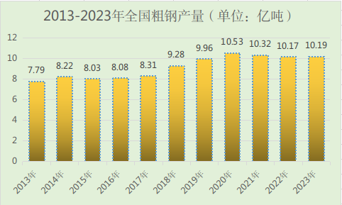 进入21世纪,随着工业化、城镇化的发展,我国的钢铁工业走向了在全球遥遥领先。2023年,我国粗钢产量10.191亿吨(连续4年超10亿吨),而全年全球粗钢产量为18.882亿吨——也就是说,我们粗钢产量比所有其它国家加起来的总和还要多。