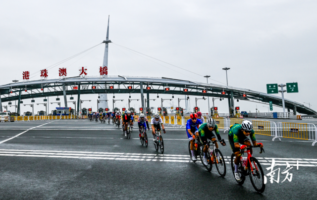 2024粤港澳公路自行车赛,选手们途经港珠澳大桥。南方+记者 钱文攀 摄