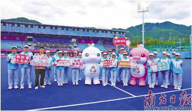 10月30日,第十五届全运会曲棍球项目将正式开赛,云浮市曲棍球场周边出现一抹抹靛青色的身影——他们是本届全运会云浮赛区赛会的332名志愿者,都有一个亲切的昵称——“小海豚”。