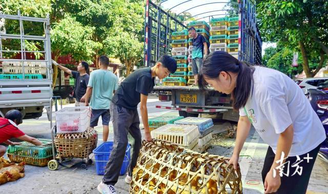 早上8时许,一辆装满着鸡苗的车辆驶进了云浮市郁南县都城镇夏袭村。在村文化广场旁,村民有的拎着鸡笼、有的拿着纸箱、有的担着箩筐、有的开来三轮车,满心欢喜地等待领取鸡苗。