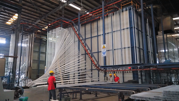 无论是从挤压车间、熔铸车间、模具制造车间,喷涂车间,还是成品仓库、模具立体仓车间,公司都配备立式氧化线、电泳、粉末喷涂、抛光、隔热穿胶、门窗深加工、自动化物流系统等完整的生产系统,基本实现生产过程自动化、智能化,以高科技提升效率与品质。