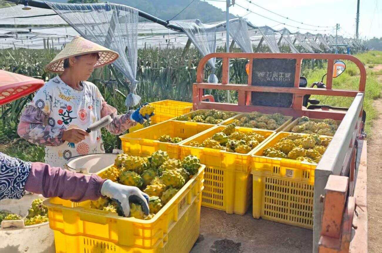 云浮罗定市太平镇双角村凡能智农黄金火龙果种植基地迎来丰收