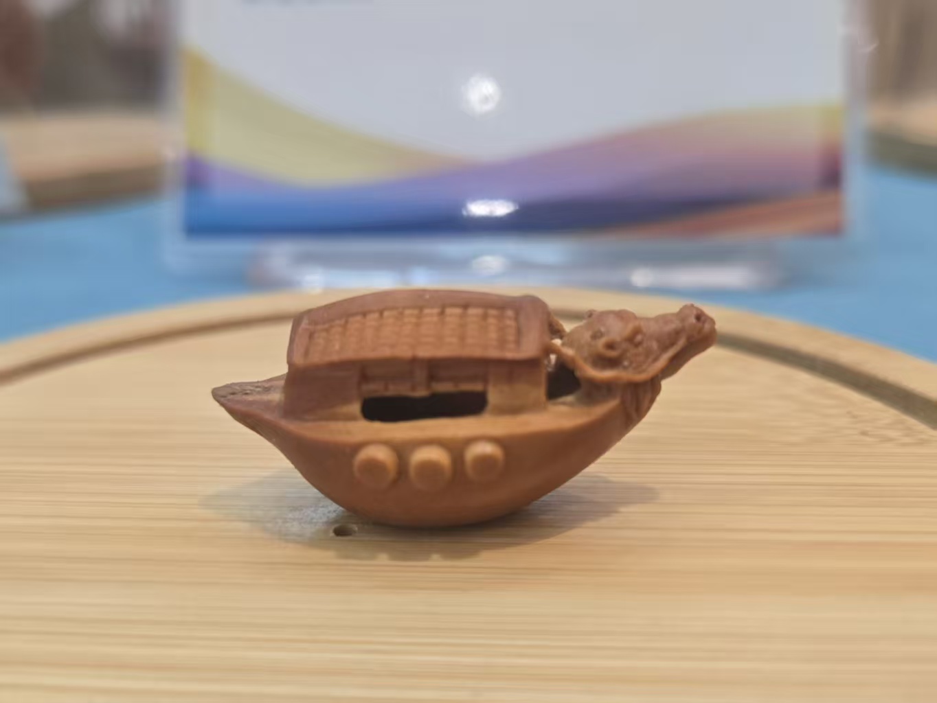 谁曾想,这“消遣”竟成了毕生热爱。白天奔波于工地,夜晚便与榄核、刻刀为伴,四年间他刻出上百件作品,从经典核舟到憨态熊猫,件件精雕细琢。“核雕最迷人的是包浆,盘着盘着就透出玉的质感。”他指尖轻拂一枚老核,纹路里藏着十余年的功夫——北方核雕的大气刀法与南方的灵秀风格在他手下交融,传统罗汉像线条遒劲,现代题材的花生、月饼则透着生活气息,连《核舟记》中“罔不因势象形,各具情态”的妙境,也在他的核上重现。