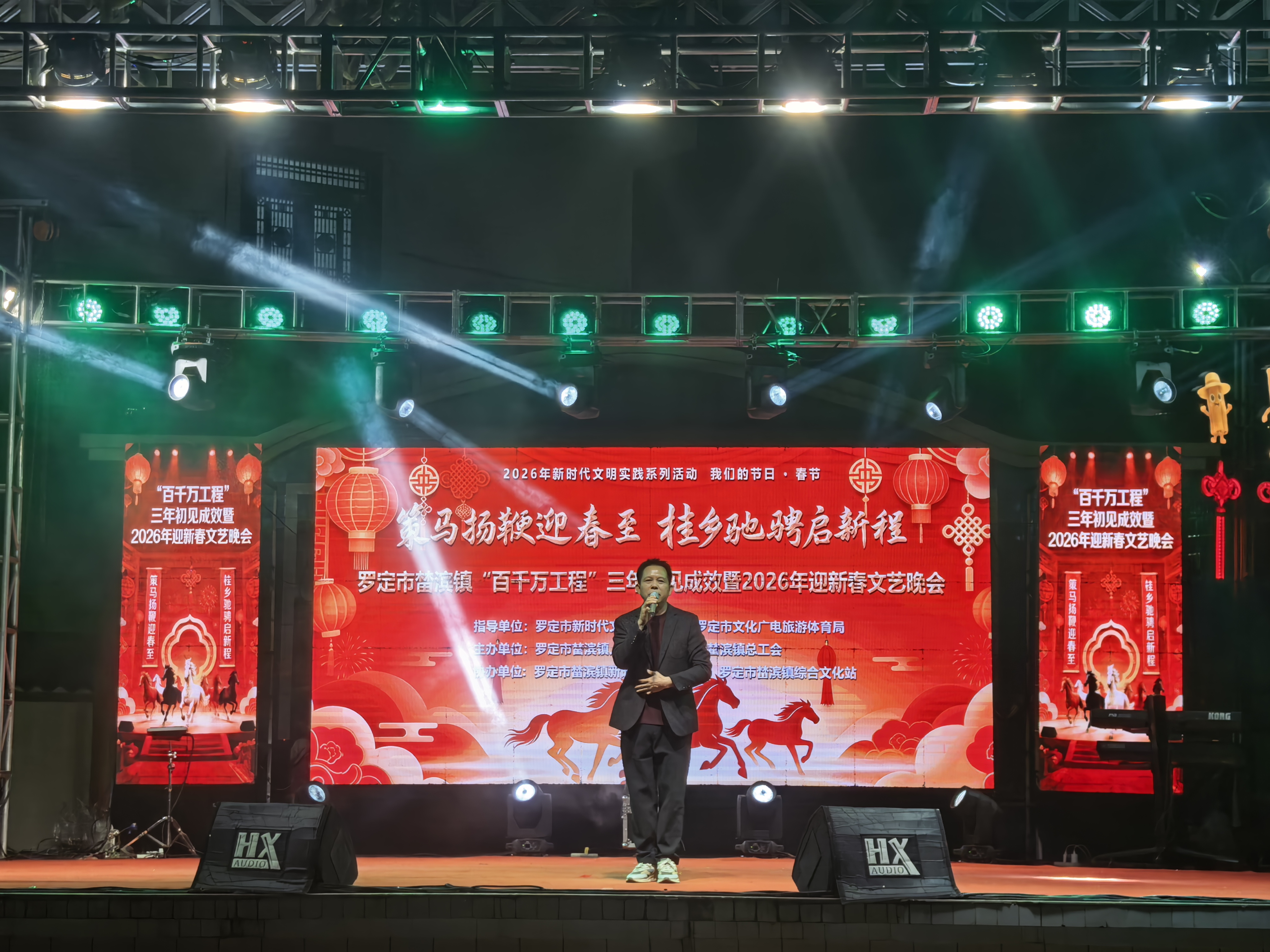 2月12日,罗定市榃滨镇“百千万工程”三年初见成效暨2026年迎新春文艺晚会在榃滨中学精彩上演。晚会呈现出形式多样、精彩纷呈的文艺节目,饱含浓郁乡土风情与新春气息,为广大人民群众献上了一场年味十足的文化盛宴,营造出喜庆祥和、欢乐融融的节日氛围。