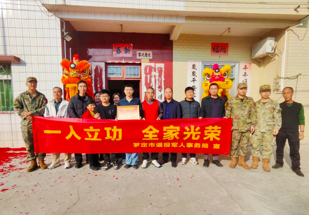 一人立功,全家光荣。近日,云浮罗定市人武部、市退役军人事务局和太平镇政府等组成送喜报队伍,为荣立三等功的罗定市太平镇籍军人梁耀文及其家属送上立功喜报。