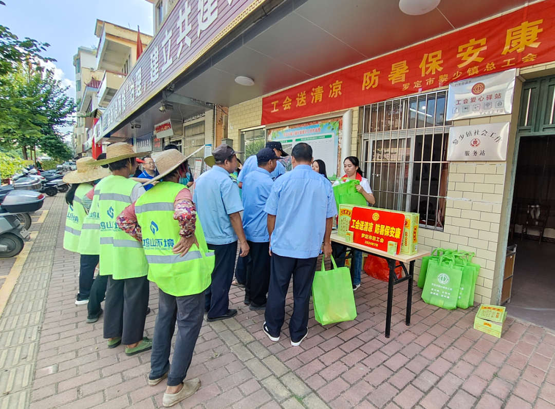 正值盛夏之际,骄阳似火,近日,罗定市黎少镇总工会在工会爱心驿站门前开展了“工会送清凉 防暑保安康”活动,向在户外辛勤工作的劳动者们表达深切的关怀与慰问。