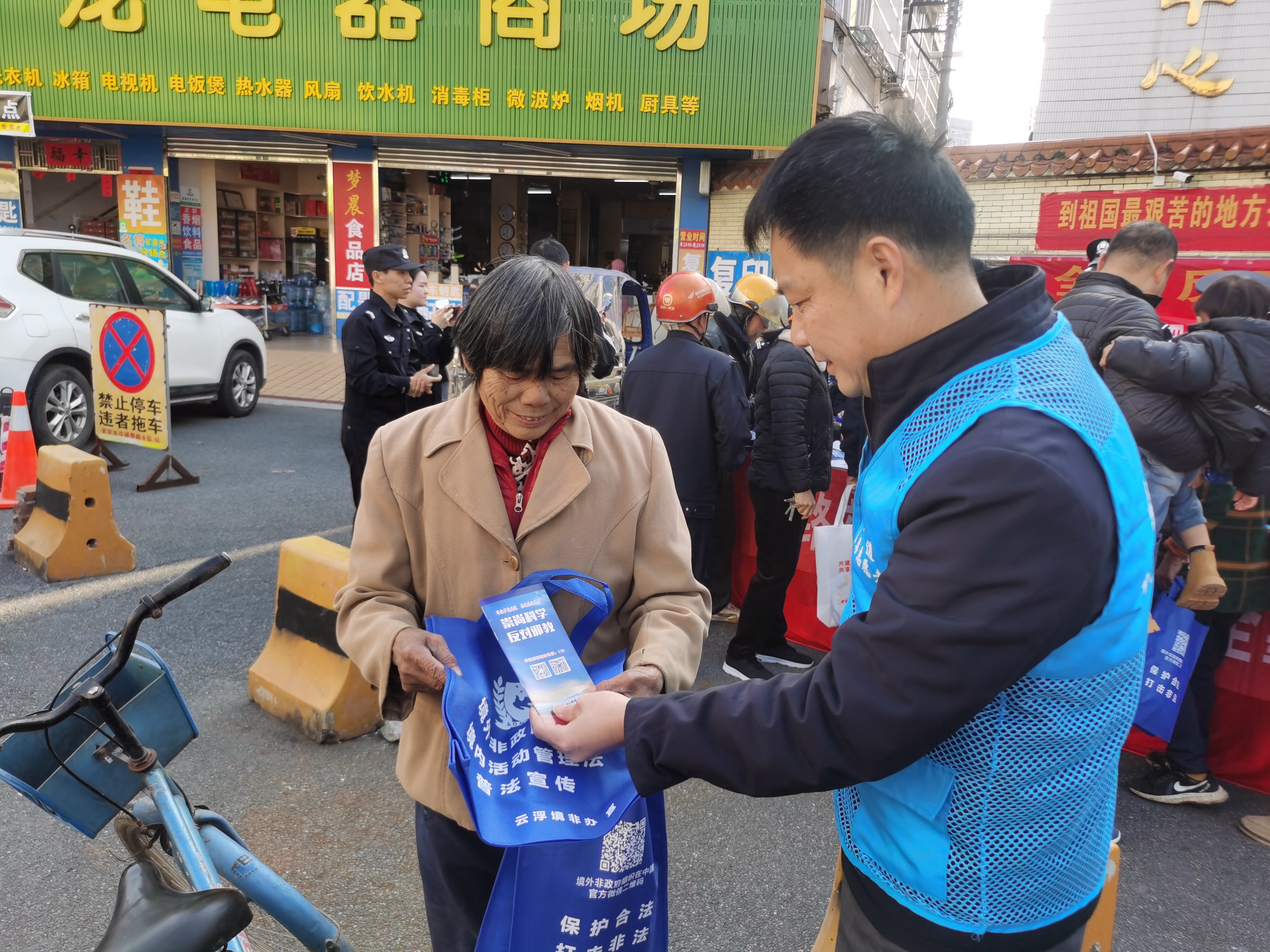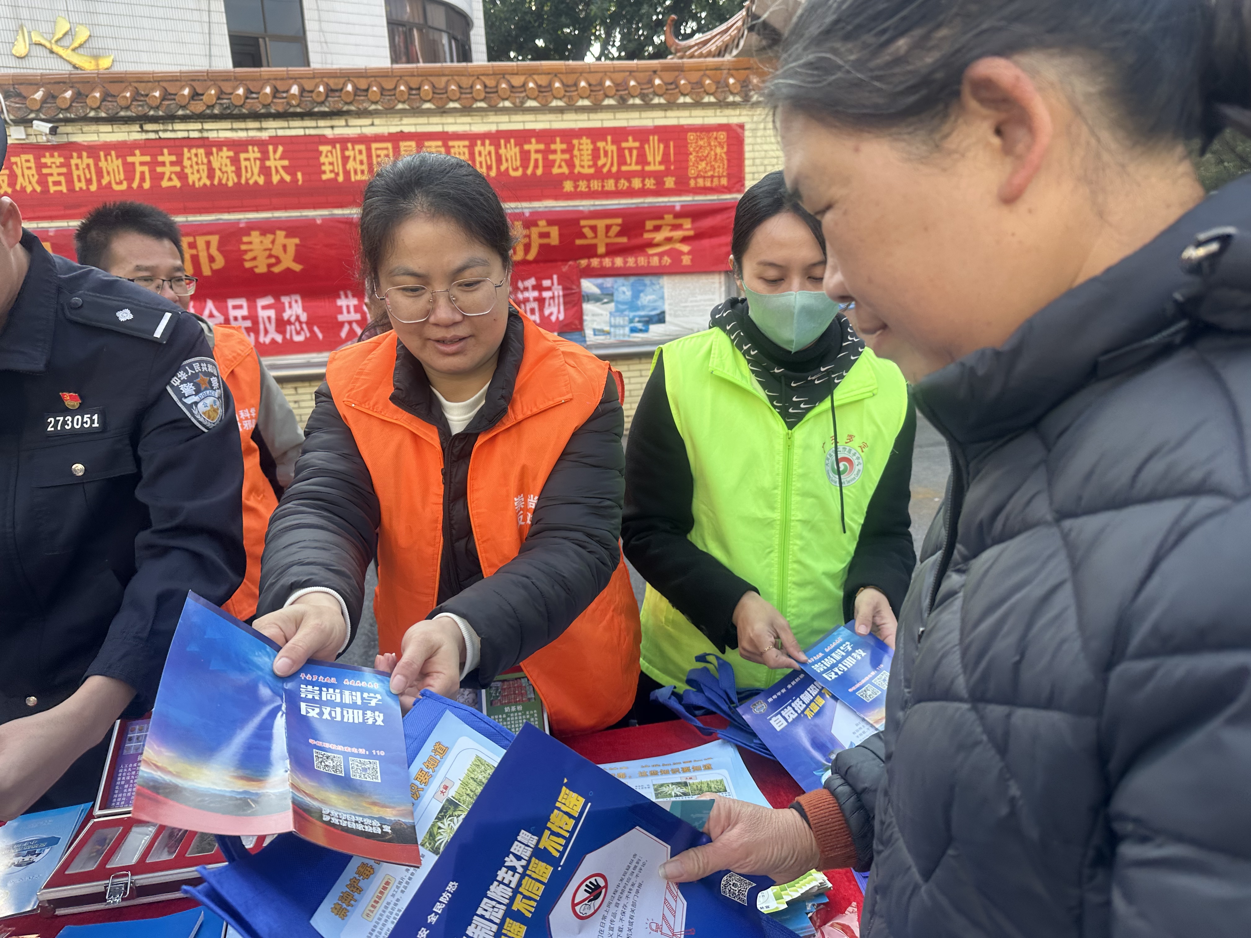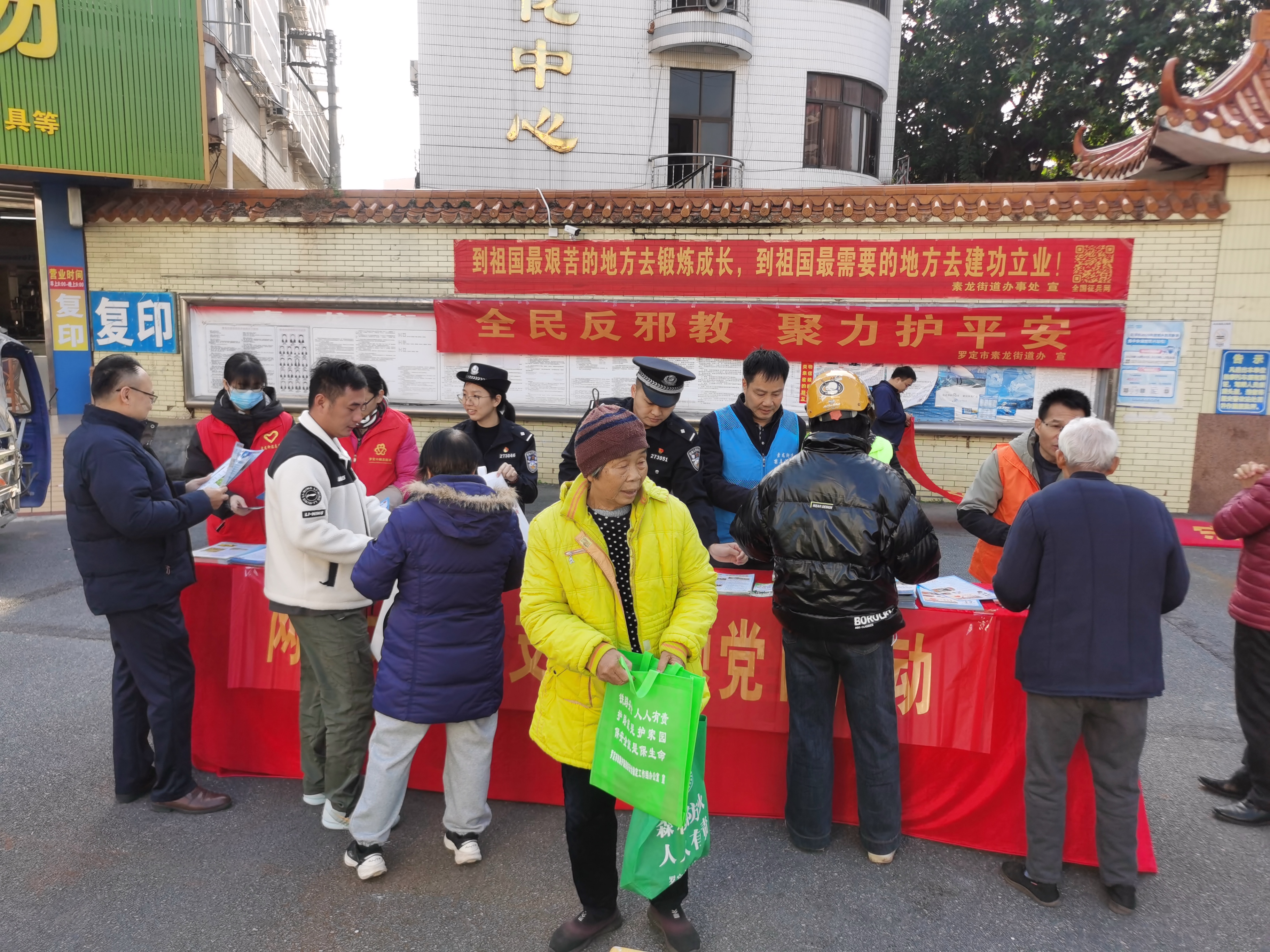 近日,云浮罗定素龙街道平安法治办联合派出所、司法所,在素龙圩开展普法反邪教集中宣传活动。旨在提升群众法治意识与反邪教能力,夯实平安建设基础。