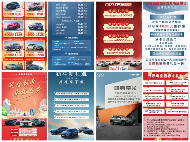 新春期间到粤宝汽车公司即获BMW定制红包1份,订车享价值16800元交车大礼包;中裕丰田汽车10台特价现车限时抢,还有多种车型落地包牌享好价;利泰汽车送出终身电池无忧礼等新春大礼包;长丰汽车新春期间送出开心大红包和保养大红包等四大红包;新力汽车迎新年,哈弗枭龙大促,全系车型均可享60期低息贷款。