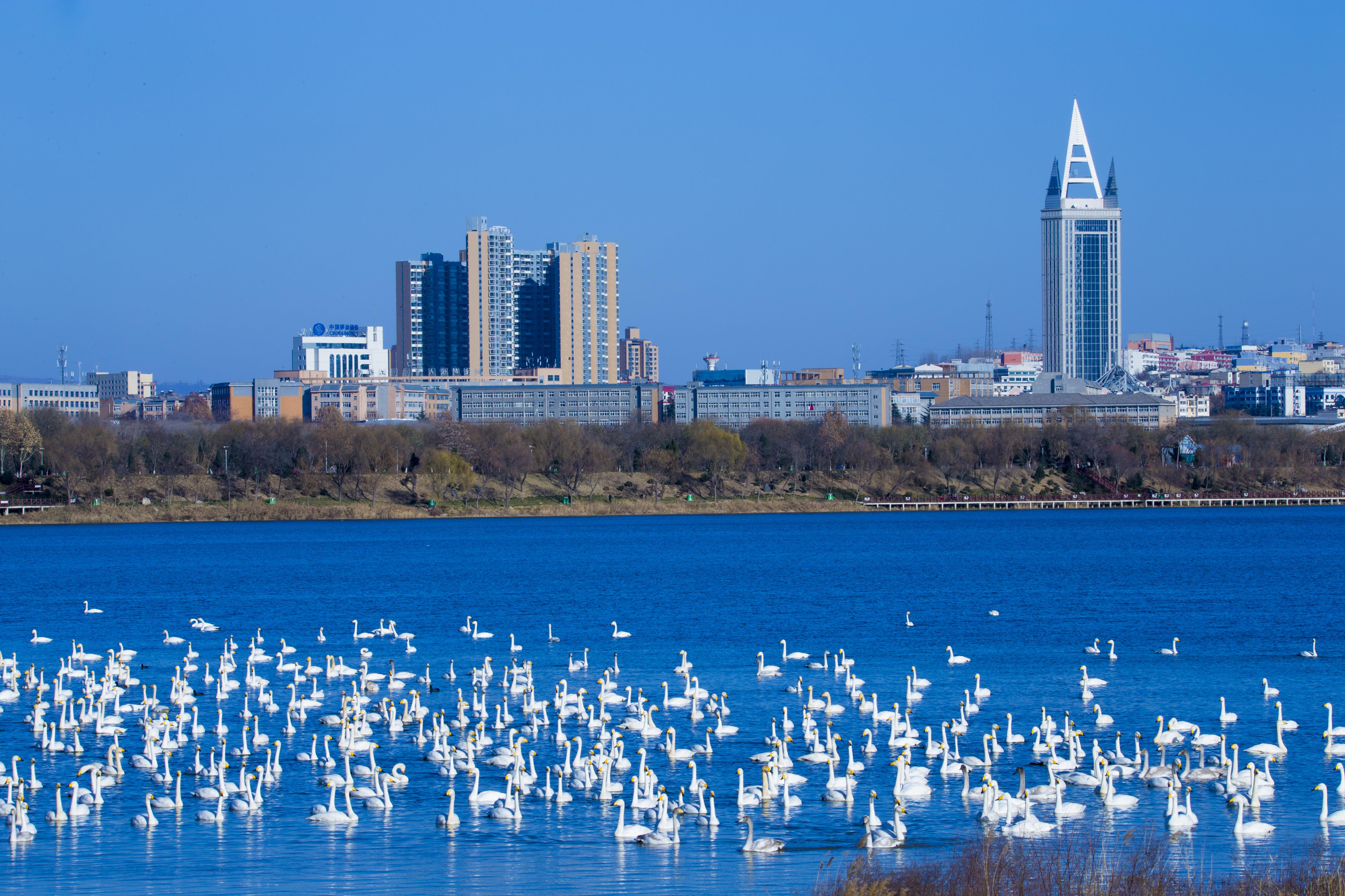 从20世纪七八十年代开始,每年冬天,美丽的白天鹅都会从遥远的西伯利亚来三门峡的黄河湿地栖息越冬。大天鹅理想的栖息环境温度在15℃以下,环境温度接近0℃时,天鹅的数量会达到高峰。