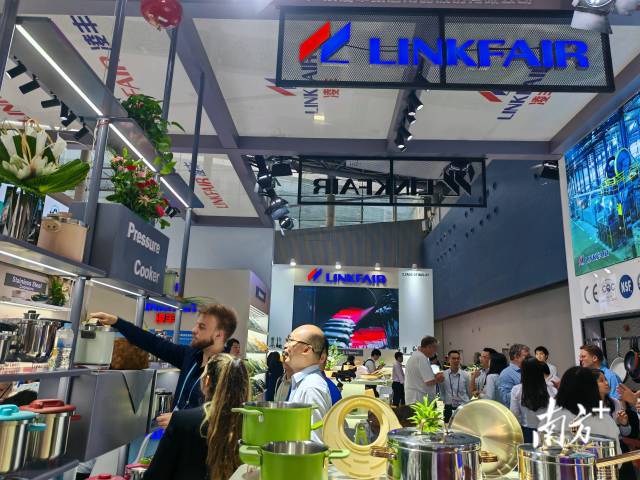 而在凌丰展示的众多新产品当中,今年新推出的高压锅产品问询度很高。“开合不像传统的高压锅,单手就能操作的同时排气更安全。”叶兴强认为锅具的便捷性和安全性是欧美客户群最为关注的创新点。