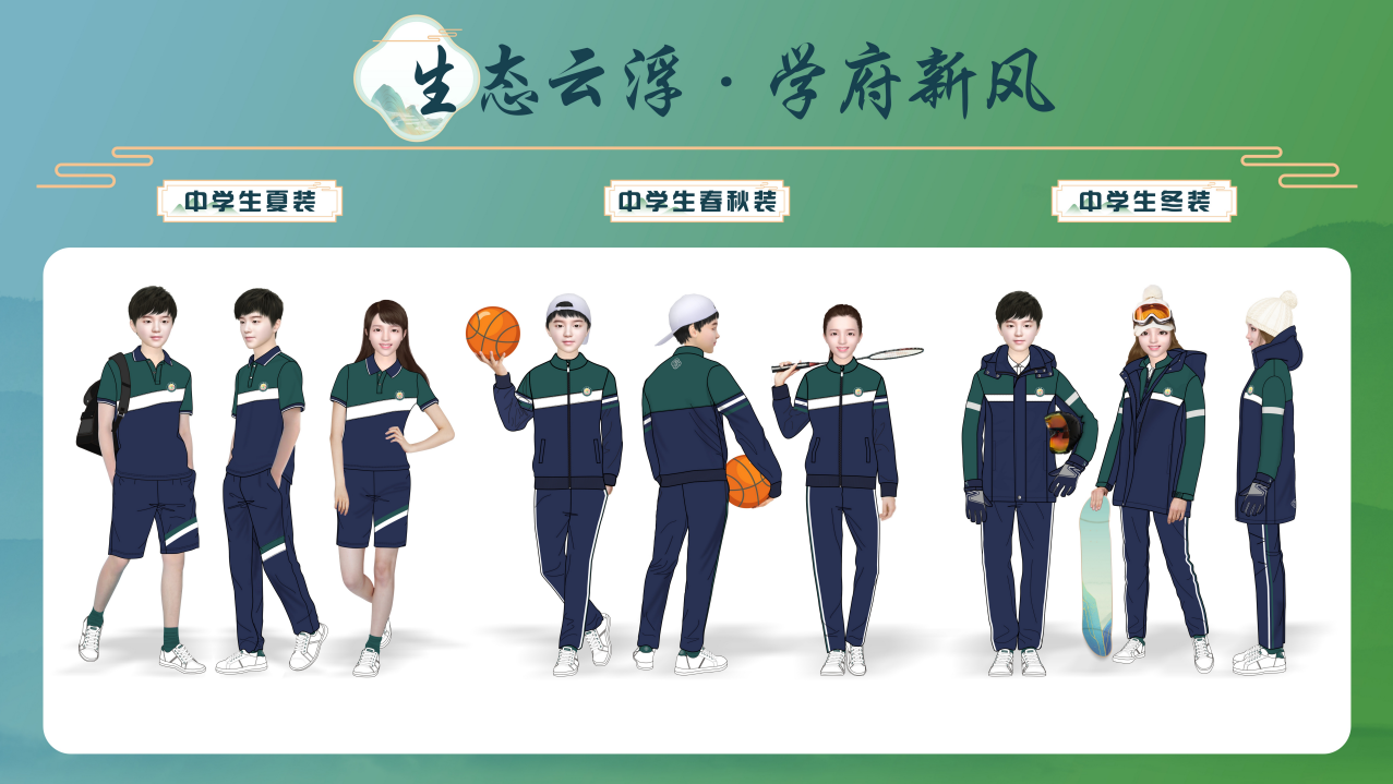 (2)实用性。设计应朴素、美观、大方、舒适、实用,符合中小学生身心特点,便于学习与活动。校服须符合《中小学生校服》(GB/T31888-2015)国家标准要求,安全环保、舒适耐穿。兼顾不同体型学生需求,成本合理,适合大众性配备。冬装应注重保暖。