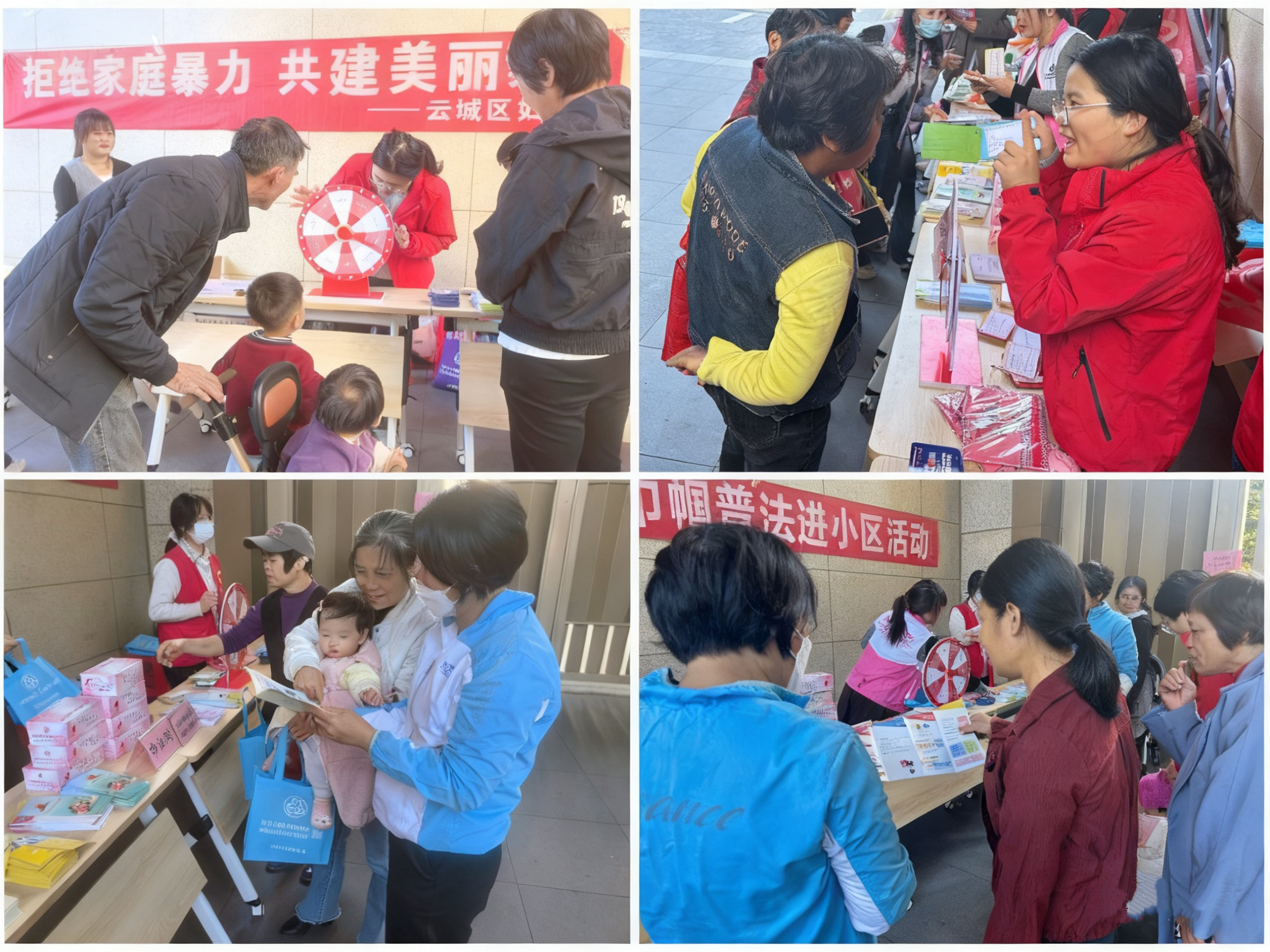 为进一步普及反家庭暴力法律法规,强化居民婚姻家庭法治观念,筑牢平安家庭建设根基,近日,云浮市、区妇联联合开展了反家庭暴力系列活动。一是走进云城街道金山社区开展“拒绝家庭暴力,共建美丽家庭”主题进小区宣传活动;二是联合区民政局,组织新婚夫妻签订反家暴承诺书,并赠送定制纪念礼品,以多元形式传递反对家暴、守护幸福的社会共识。
