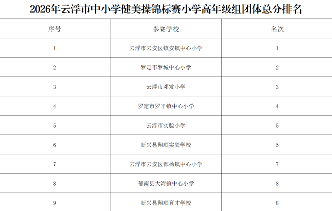 经过多轮激烈角逐,赛事各项奖项全部揭晓。各参赛学校凭借扎实的训练功底、出色的赛场表现,斩获佳绩、载誉而归。此次锦标赛不仅是一次校园体育竞技的盛会,更是云浮市深化教体融合、推进素质教育的生动实践,有效激发了中小学生参与体育锻炼的热情,提升了学生身体素质、艺术修养与团队协作能力,进一步夯实了校园体育文化建设根基。