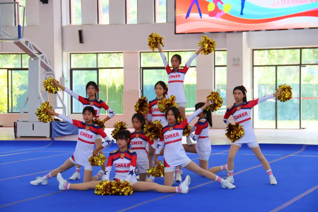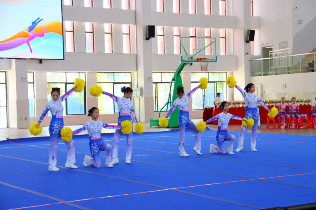 比赛现场活力四射、气氛热烈。各参赛队伍精神抖擞、斗志昂扬,身着整齐靓丽的服装,伴随着动感激昂的音乐,依次登场亮相。灵动的舞步、整齐的动作、饱满的热情、自信的表情,将力量与柔美、体育与艺术完美融合。默契的配合、精湛的技艺、新颖的编排,充分展现了云浮市中小学生朝气蓬勃、奋发向上的精神风貌,赢得现场观众阵阵掌声与欢呼声。从活力满满的小学组萌趣演绎,到青春洋溢的中学组激情绽放,再到风采不减的教师组精彩展示,每一支队伍都全力以赴、奋勇争先,在竞技中锤炼意志,在协作中凝聚力量,用汗水与努力书写青春最美篇章。