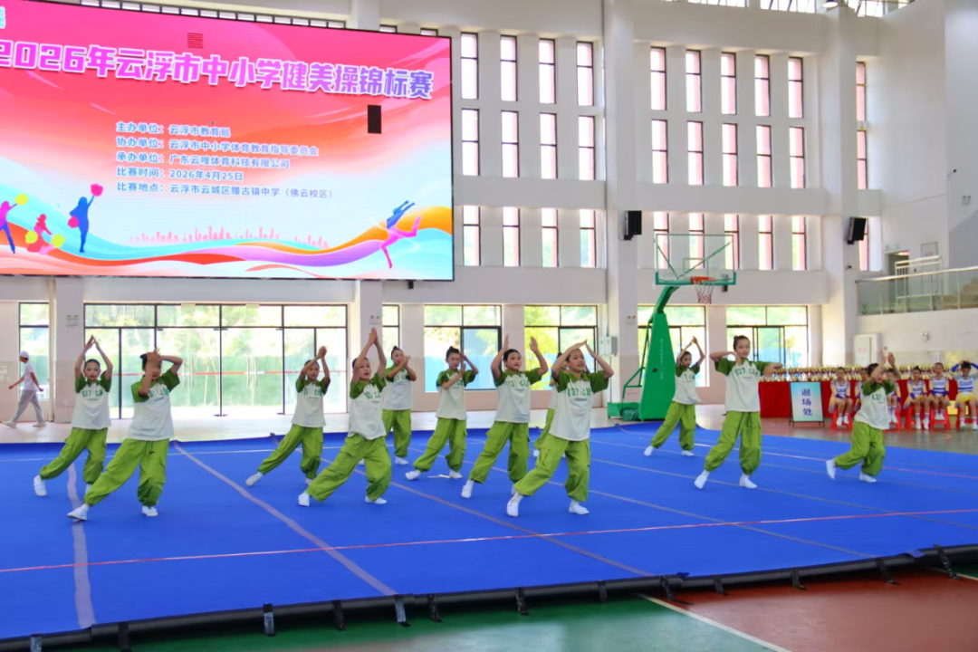 为落实“教会、勤练、常赛”校园体育工作要求,推动全市中小学健美操运动普及与发展,增强学生身体素质与艺术素养,4月25日,由云浮市教育局主办的2026年云浮市中小学健美操锦标赛在云城区腰古镇中学(佛云校区)圆满收官。本次赛事共吸引全市51支队伍727名师生齐聚赛场,以动感舞姿诠释青春活力,用拼搏姿态展现云浮校园体育教育丰硕成果。