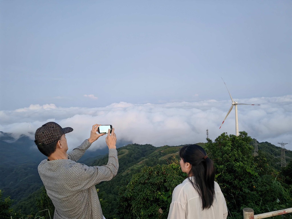 近日天气晴好,秋高气爽,众多户外爱好者到罗定风车山打卡露营,看日出日落,看漫天云海。罗定风车山位于罗定市龙湾镇,原名“亚婆髻山”,因中广核罗定亚婆髻风力发电场项目建成46座风力发电机而更名。该景点以海拔1137米的山顶风车群为核心景观,兼具云海、星空、高山草甸等自然风貌,全年适宜开展观光、露营、摄影活动。