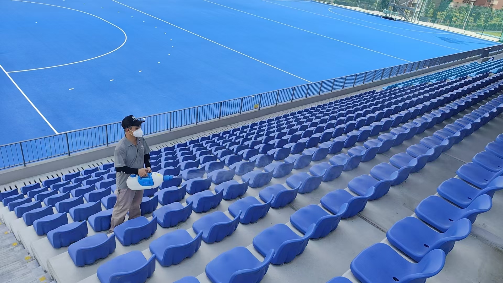 场馆物业还建立了专门的消杀台账和隐患整改机制,对看台、草坪边缘等多个重点区域实行每日巡查、动态监测。通过加强卫生保洁、清理杂物,为排水道安装防蚊网等积极措施,降低蚊虫密度,发现问题当天清零。“9月以来,我们每周二、周五对整个场馆进行蚊虫消杀作业,累计完成10轮全域消杀。接下来,我们会继续根据赛事筹备进度强化闭环管理,为运动员打造安全洁净的竞赛环境。”欧秋嫦说道。