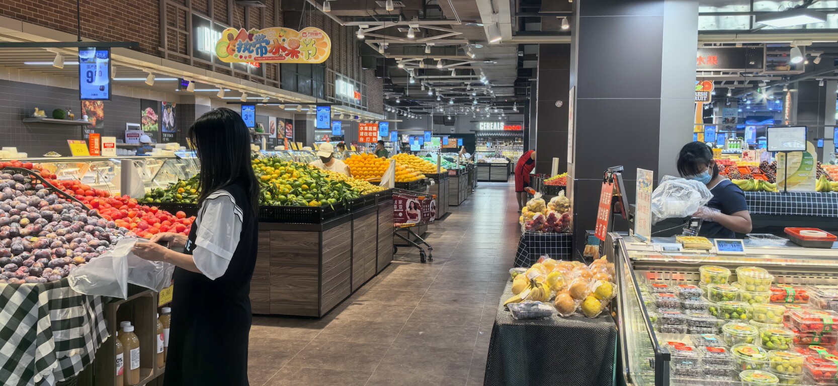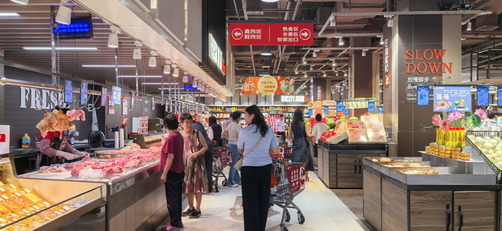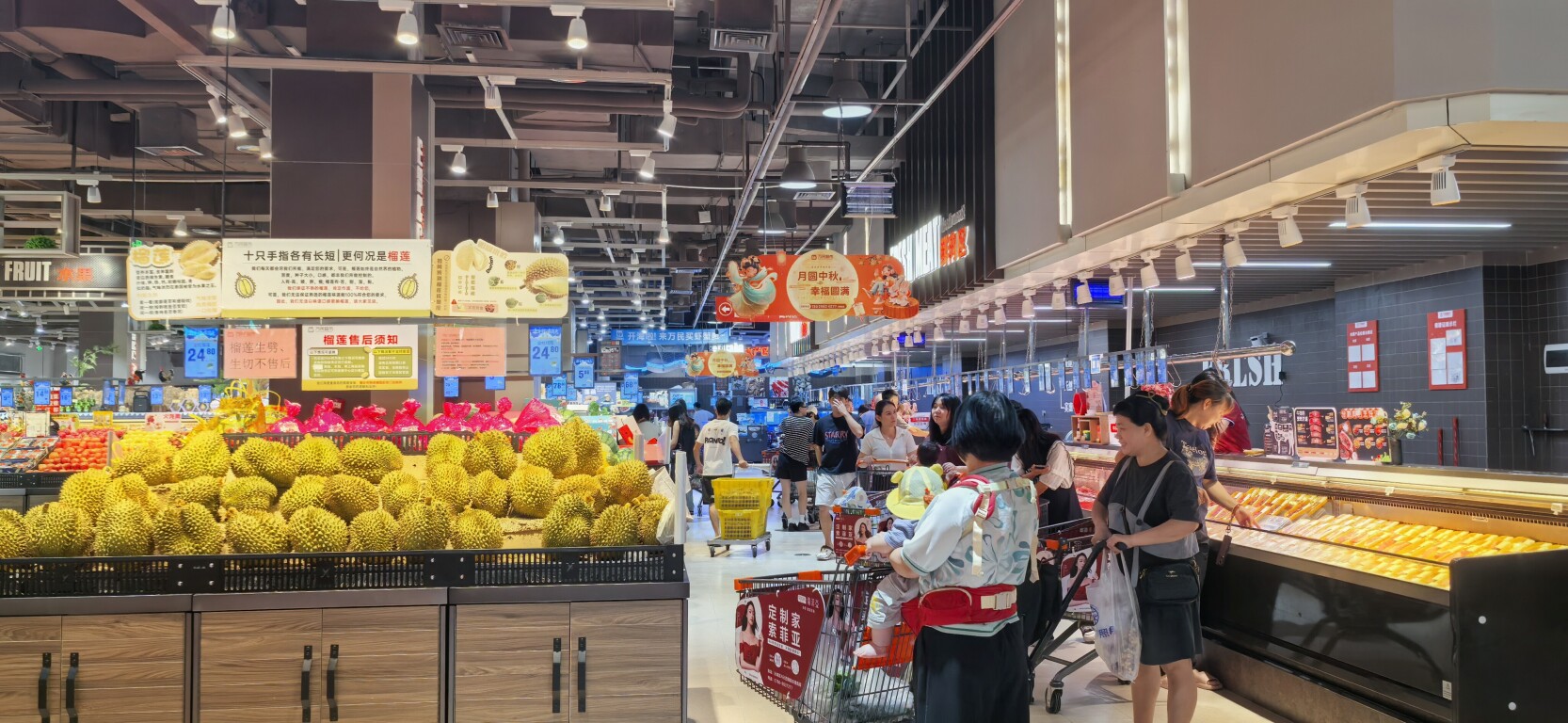 9月23日上午,记者走访发现,云浮市各商超门店及肉菜市场正常营业,量足价稳。在市城区一家大型超市,蔬菜、水果、肉蛋奶、米面粮油等民生必需商品的货架满满当当,种类齐全,不少市民正在有序采购。“台风来临前,会适当增加采购量,储备必要的饮用水、方便食品以及肉禽蛋菜等生鲜物资。”市民李小姐表示。