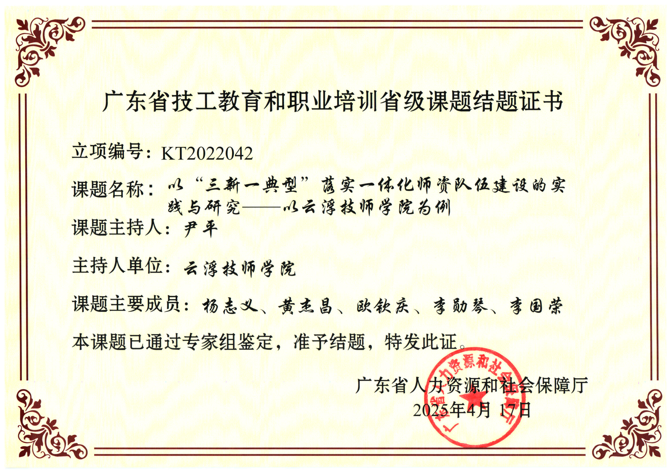 广东省人民政府近日正式公布了2025年南粤优秀教师、南粤优秀教育工作者及特级教师表彰名单,全省共表彰2344人。其中包括南粤优秀教师1675人、南粤优秀教育工作者170人、特级教师499人。云浮技师学院尹平、黄杰昌两位教师光荣入选,位列表彰名单之中!