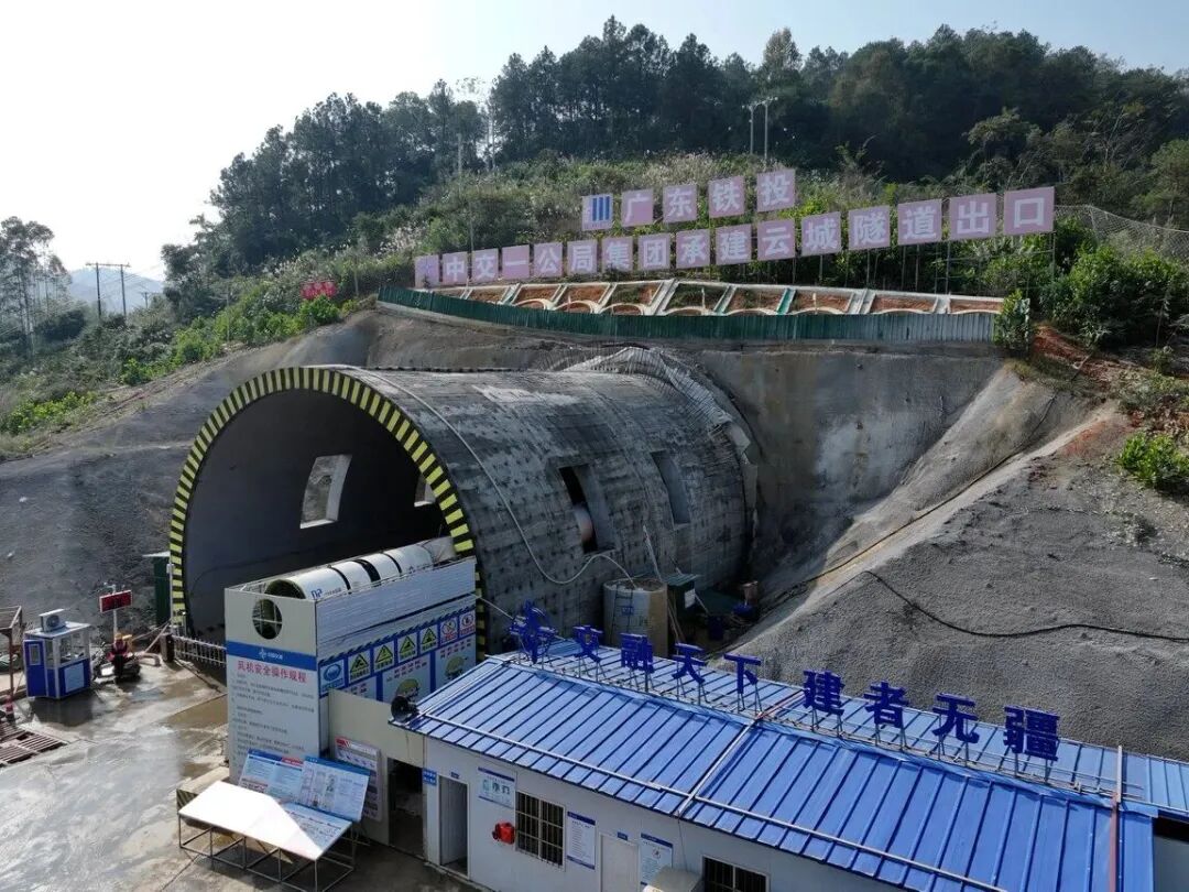云城隧道全长14.8公里,隧道进口位于云浮市云安区镇安镇,出口位于云城区白石坳附近。隧道沿线地质条件复杂,需穿越2处断层破碎带和13处节理密集破碎带,施工区域邻近水库、水塘等敏感水体环境,是深南高铁广东段唯一一座长度超过10公里的极高风险隧道,也是全线的关键控制性工程。