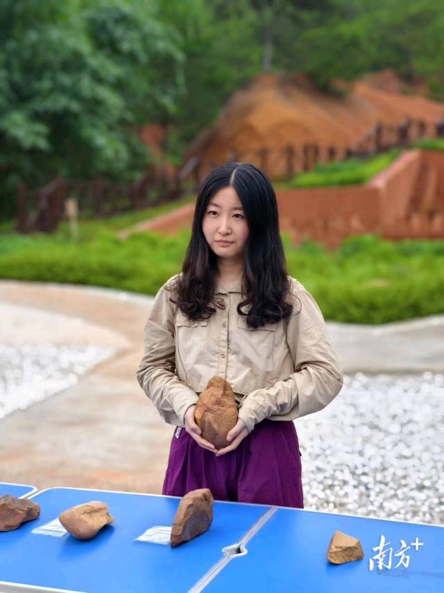 记者在广东省考古研究院,见到了郁南磨刀山遗址出土的这枚亮眼石器——红土之心。