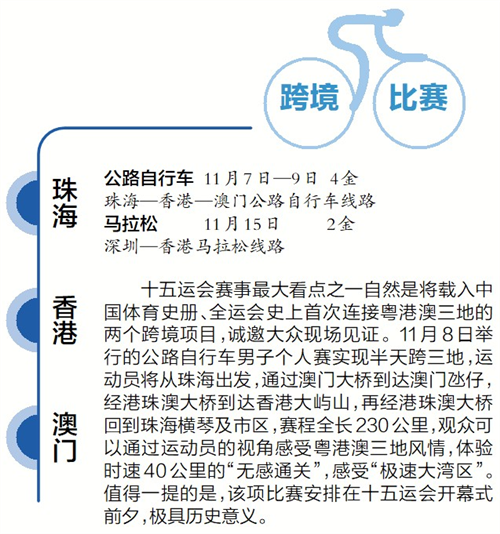 十五运会是港澳来内地参赛和内地赴港澳参赛人数最多的一届。粤港澳公路自行车赛,运动员在230公里的赛道上6次无间断通过港珠澳大桥三地口岸,全程享受“不踩刹车”的通关体验;深港马拉松赛,运动员一口气跑遍深港两地,领略湾区融合之美。各口岸为参赛代表团设立了“专用通道”,代表团可以“团进团出”“即到即走”,同时为持票观众开通“绿色通道”,出入境证件“全国通办”,凭赛事门票还可“急事急办”,实现“一证在手,说走就走”,共享湾区一小时生活圈。好客的小海豚志愿者会做好引导服务,让大家都能感受到“粤港澳路路通,大湾区一家亲”的便利和热情。