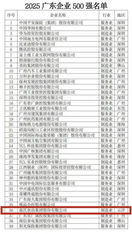 10月29日,广东省企业联合会、广东省企业家协会发布《2025广东500强企业发展报告》,中国平安、华润、华为、南方电网、比亚迪、腾讯、富士康、招商银行、美的、广汽位列前十。