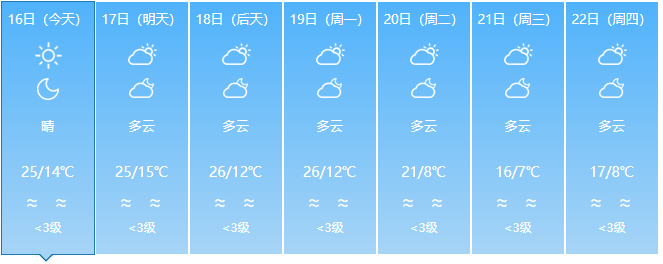 1月16日,粤西、肇庆、云浮、清远、韶关和粤东市县晴到多云,其余市县晴天间多云。粤西和珠三角西部市县早晚有(轻)雾。最低气温:粤北和珠三角北部市县7~11℃,雷州半岛17~19℃,其余市县12~15℃。