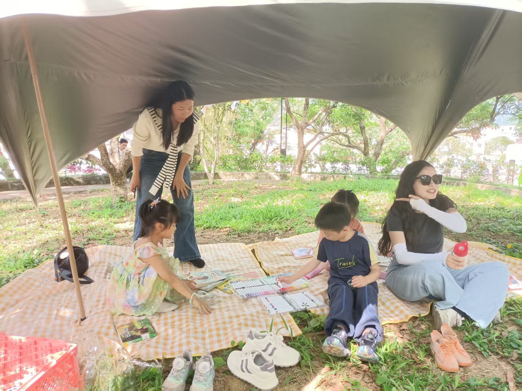 本次帐篷读书会打破传统室内阅读空间限制,在下白村“粤书吧”后山开阔草坪集中开展,搭建休闲帐篷与舒适天幕,就地取材打造开放式、沉浸式“天然阅览室”。活动依托山野清风、绿地美景,融合书香气息与咖啡醇香,营造轻松自在、温馨舒适、氛围感满满的共读氛围,让读者在自然之中放松身心、静心阅读、交流分享,切实提升全民阅读参与感与体验感。