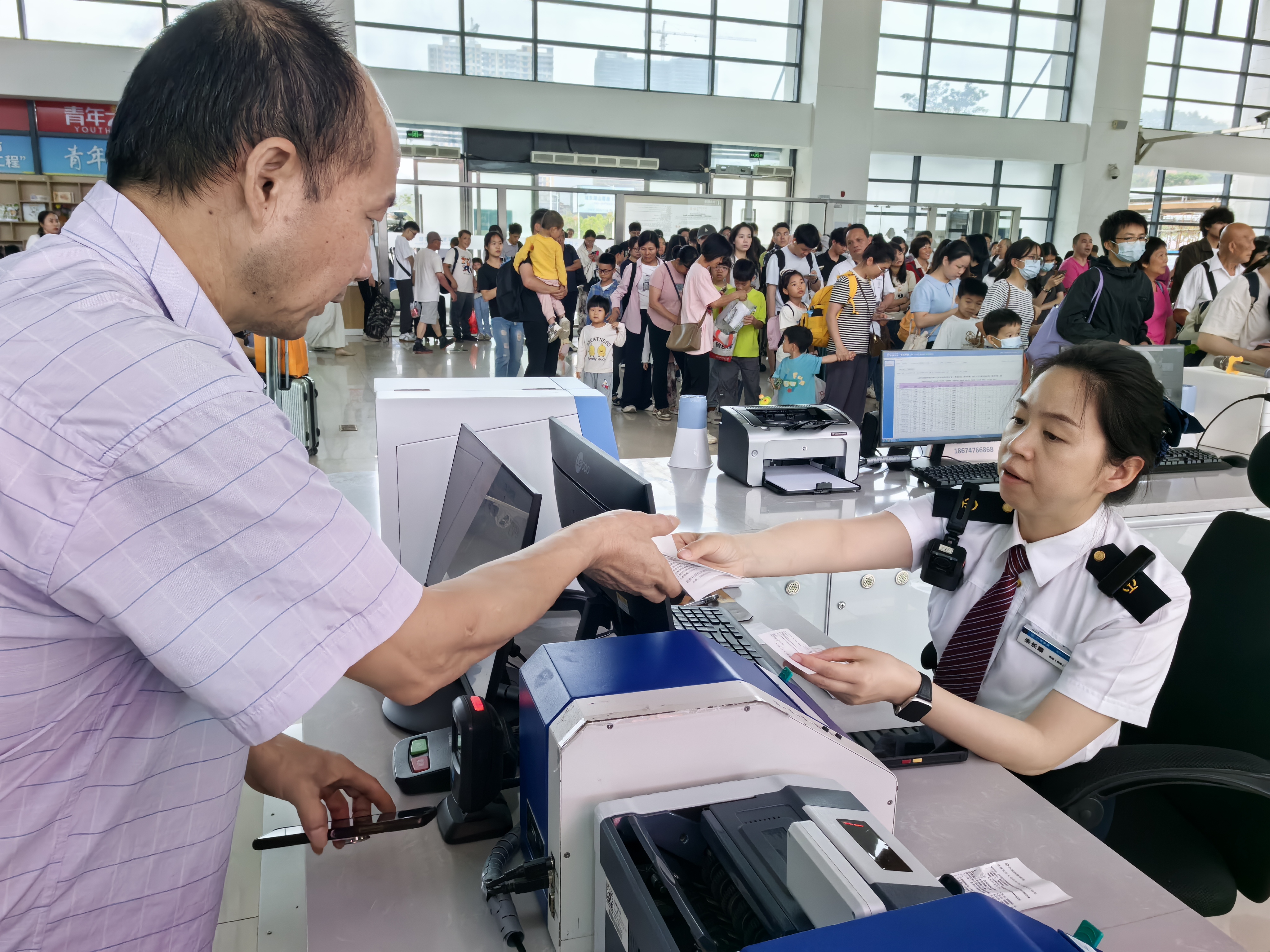 票务服务便捷高效,出行少麻烦。在候车室、服务台增设志愿服务岗,安排专人现场指导旅客使用铁路12306手机APP,一站式办理售票、改签、退票、积分兑换车票等业务,省去现场排队繁琐流程;同时为未携带有效身份证件的旅客快速办理临时乘车证明,高效受理旅客遗失物品查找、申报等诉求,用便捷服务解决旅客出行后顾之忧。
