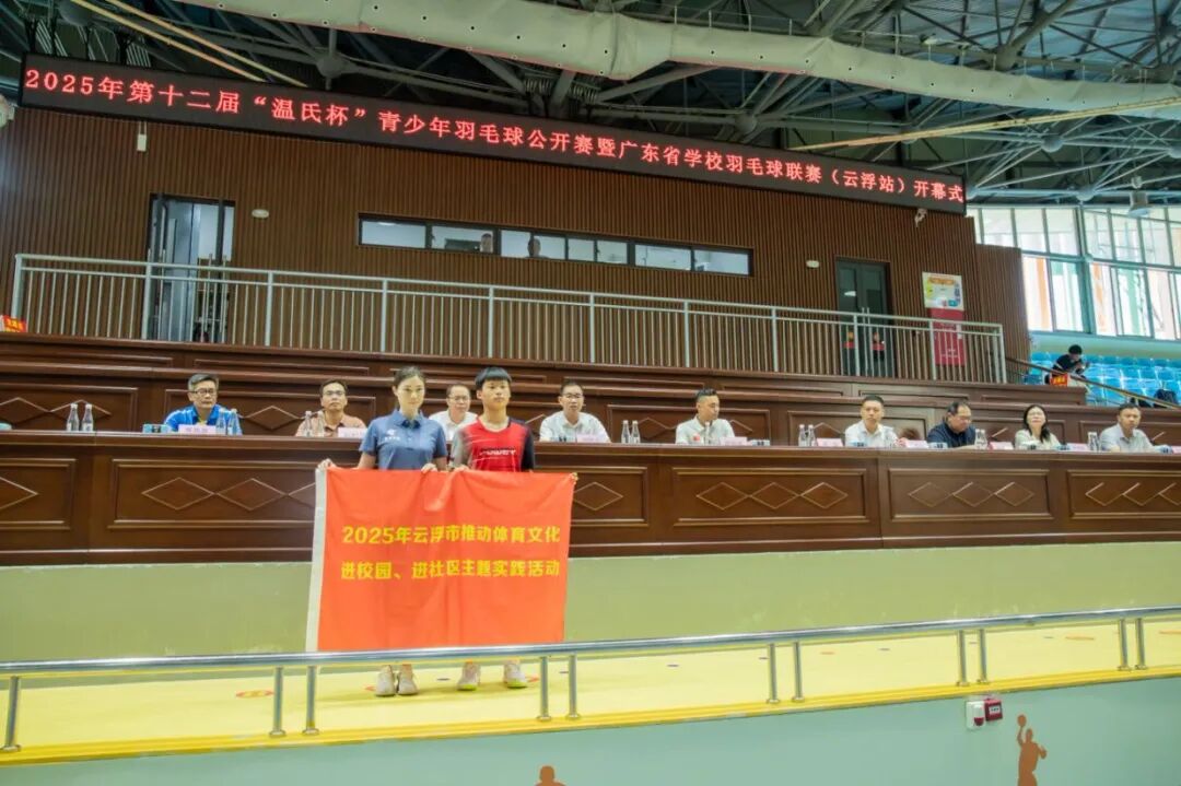 活动邀请了“国际级运动健将”中国羽毛球运动员邓璇出席,并为“2025年云浮市推动体育文化进校园、进社区主题实践活动”进行授旗。活动过程中,更与小运动员交流了球技,为云浮播撒体育文化种子。