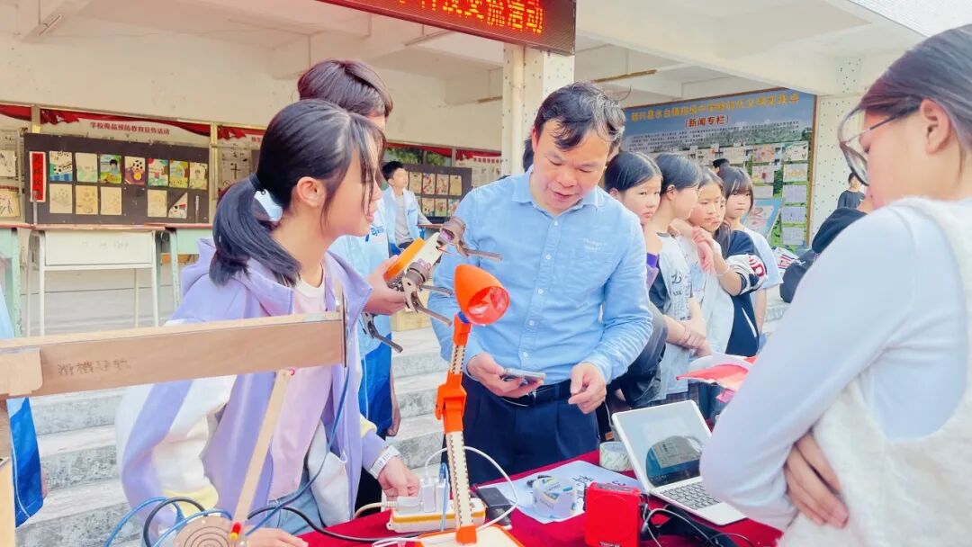 近日,在云浮市科学技术协会、新兴县科学技术协会指导下,新兴县水台镇初级中学联合新兴县实验中学、新兴县惠能中学、六祖镇船岗小学、六祖镇集成中学、彭仕成名教师工作室共同举办“科技筑梦,创新成长”六校科技作品展示交流活动。本次活动旨在搭建跨校科技教育交流平台,集中展示师生创新成果,营造区域协同、崇尚科学的良好氛围。