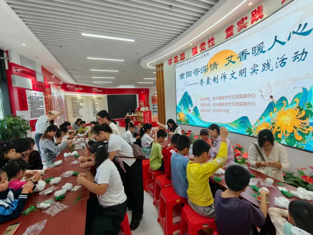 岁岁重阳,今又重阳。为传承中华优秀传统文化,让小朋友们在实践中感受重阳节“尊老、敬老、爱老”的节日氛围,10月25日,新兴县新时代文明实践中心开展“重阳寄深情,艾香暖人心”香囊制作文明实践活动,30多名小朋友化身“传统文化小传承人”,在一针一线、一草一香中,编织属于自己的重阳祝福。