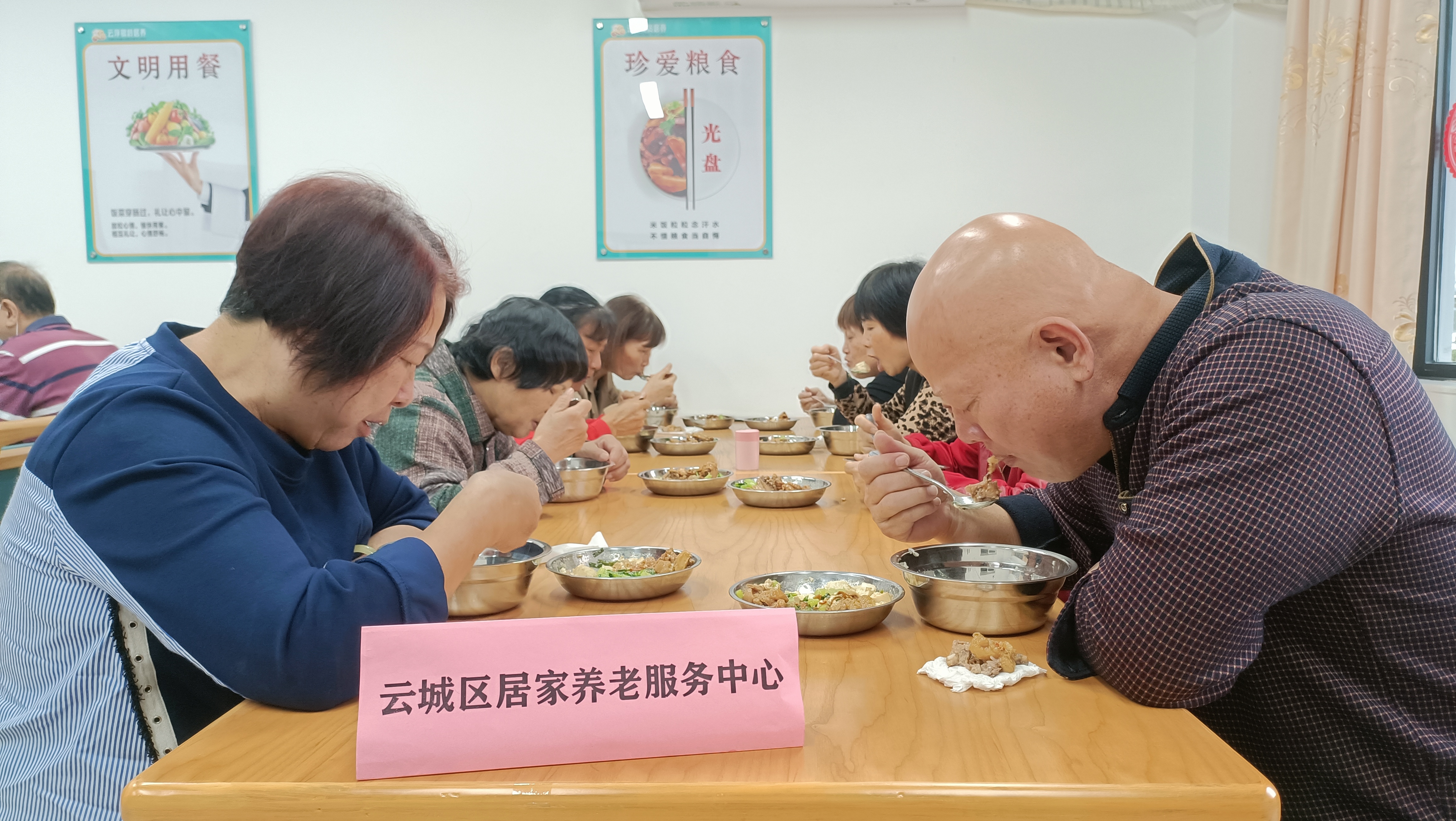 “我们年纪大了,身体不太方便,自己买菜做饭有时力不从心,现在有了长者饭堂,吃饭方便了很多,而且这里饭菜种类多,荤素搭配,软硬适中,很适合我们老人,儿女也不用担心我的吃饭问题了。”在长者饭堂用餐的一位长者笑着说。主题教育开展以来,云城区以老年人服务需求为导向,在多样化养老服务上持续发力,统筹现有资源打造“1+N”助餐服务模式,选取了位于中心城区的云城街道蟠龙社区打造配套完善、运作规范的长者饭堂为中心站点,统筹利用周边村(社区)居家养老服务站资源,打造N个村级长者饭堂助餐点,通过中央厨房制作配送,实现周边村(社区)老年人助餐服务全覆盖。同时,以助餐送餐服务为抓手,对发现需协助的特殊困难老人提供生活照料、基础照护、健康管理、探访关爱、精神慰藉、委托代办等居家养老上门服务,不断增强广大老年人居家社区养老的获得感、幸福感、安全感。