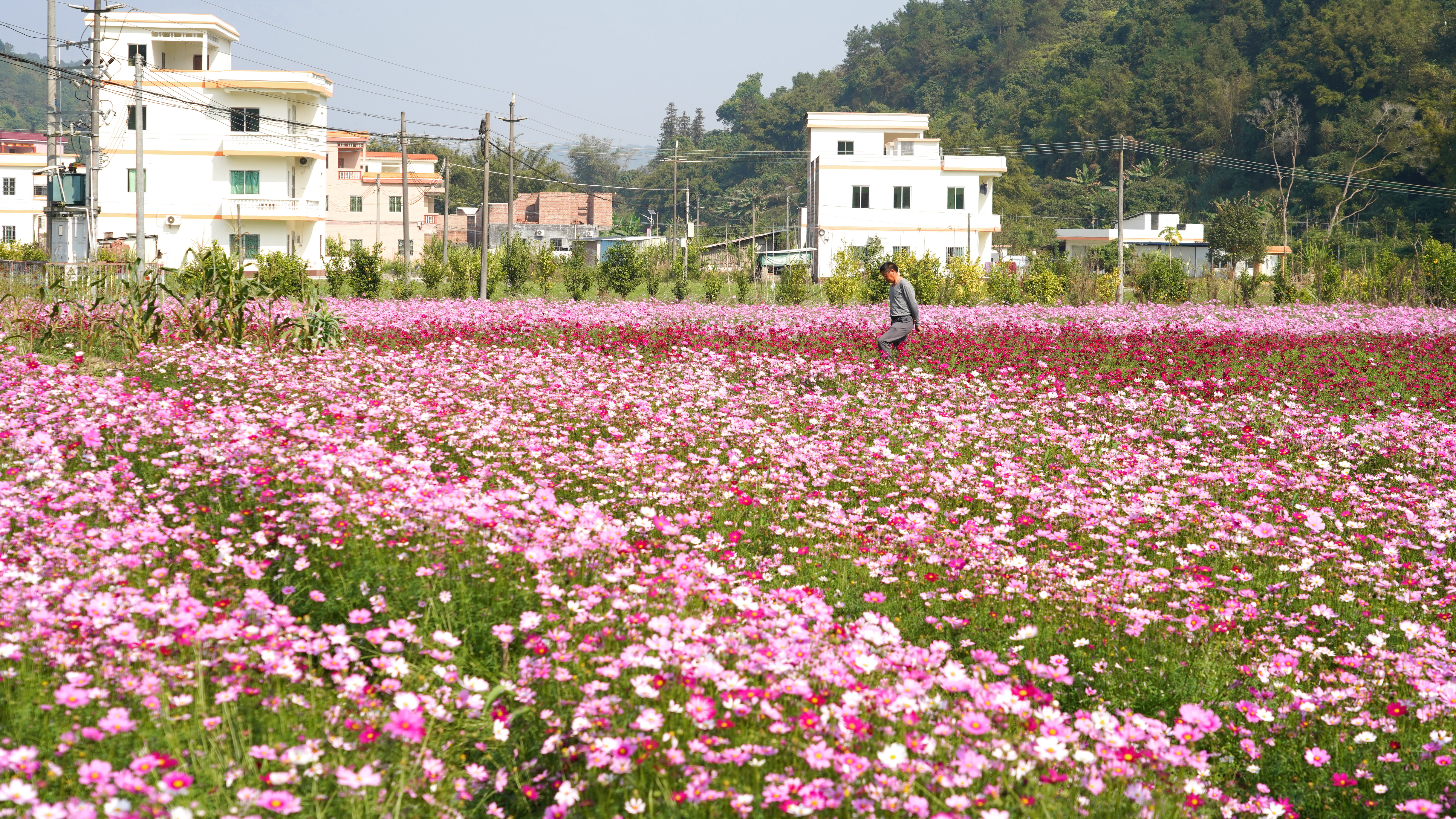 粉了粉了!云浮南盛枧岭村百亩格桑花开遍野