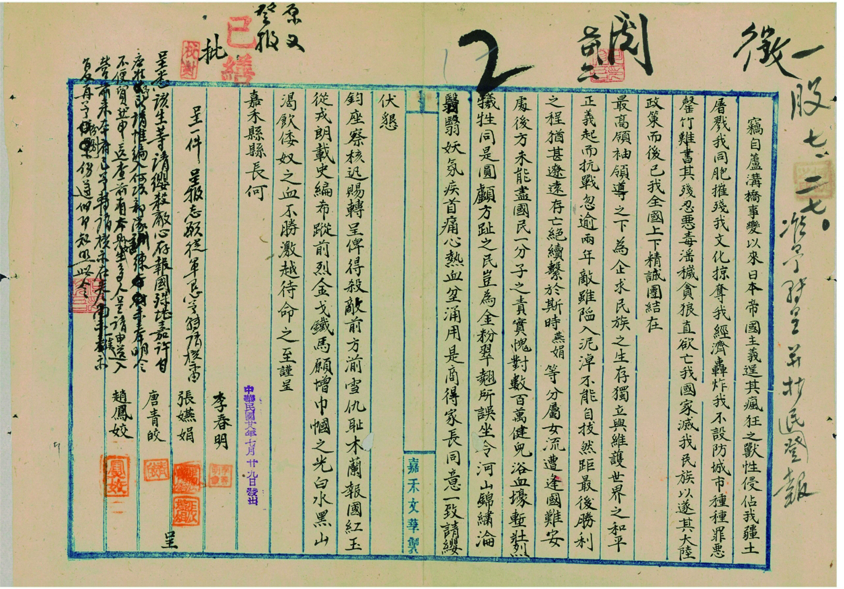 嘉禾县委党校教授曾武分析,这些女性大多家境殷实,却甘愿“舍弃小家投身抗战”,她们在请战书中将个人命运与民族存亡紧密相连,提出“共赴国难,贡献力量以实现国家复兴、民族独立”,展现出超越时代的家国情怀。
