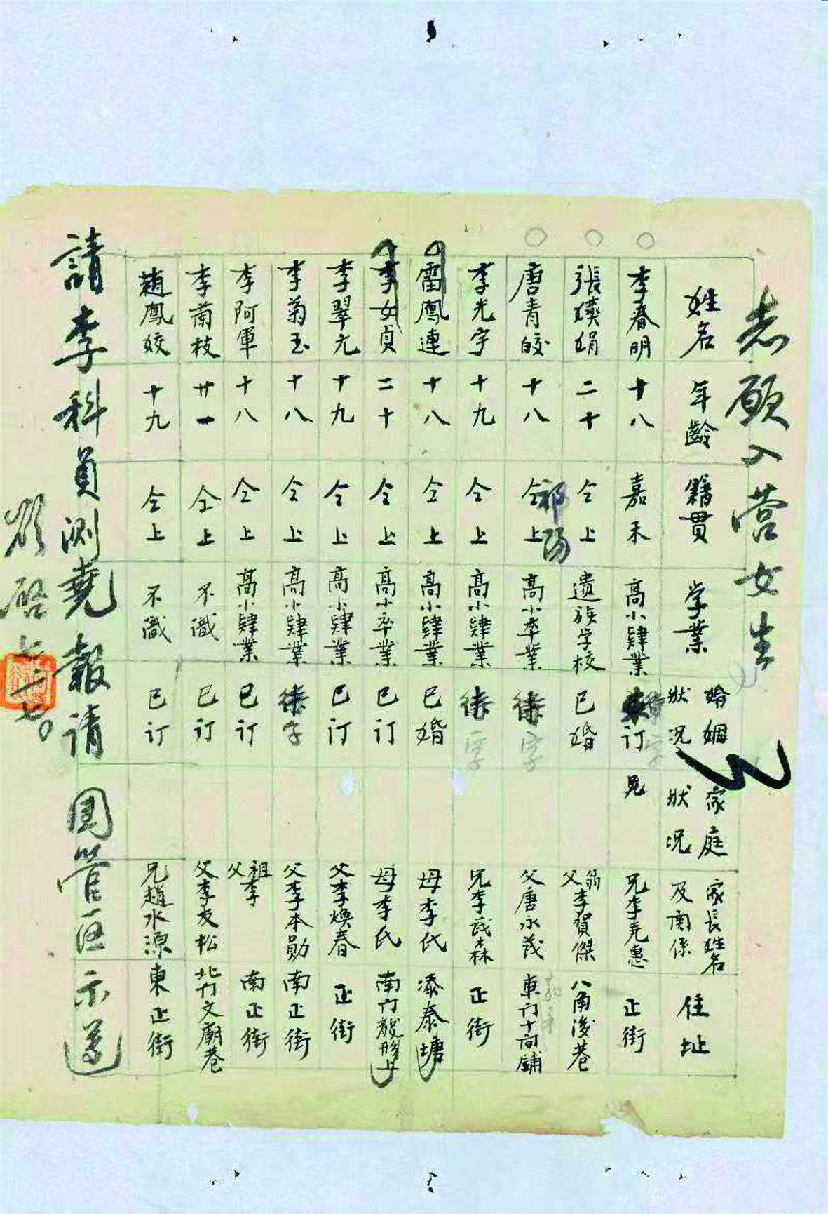 1949年嘉禾和平解放后,县政府档案室完整接管民国档案,使这份珍贵文献得以留存。档案中不仅有11名女子的基本情况,更记录着她们“待命之至”的焦灼与决心。