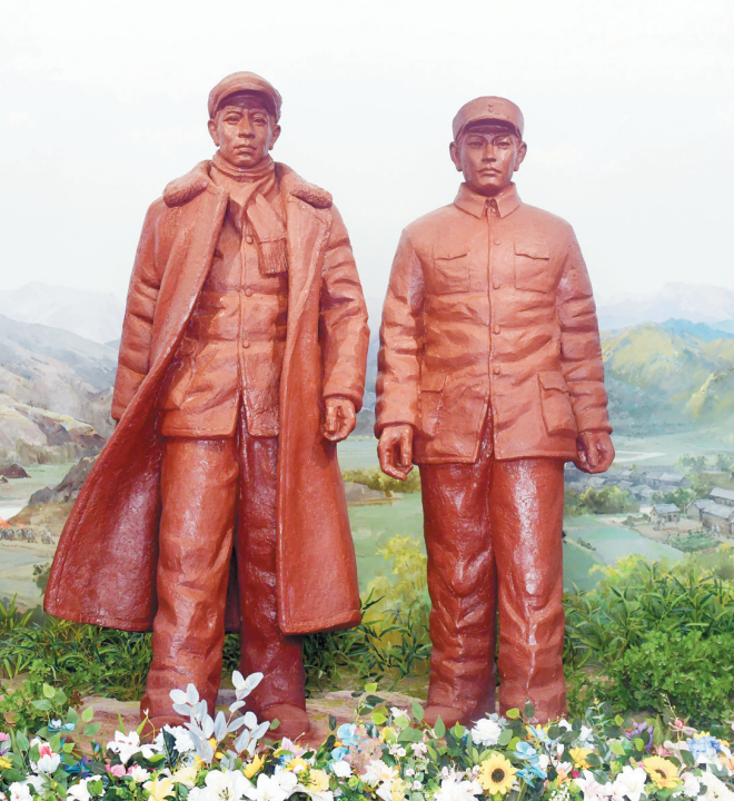 确山竹沟革命纪念馆内刘少奇、李先念雕像