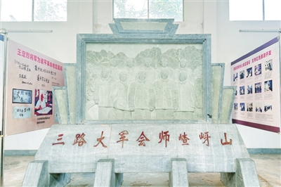1945年10月,嵖岈山镇土山村红旗飘扬。八路军、新四军的3支部队胜利会师,标志着党中央“绾毂中原”的重大战略在嵖岈山区域成功实现。华中、华北、陕北自此血脉贯通、连成一片,铸就了我党我军无可撼动的战略基石。