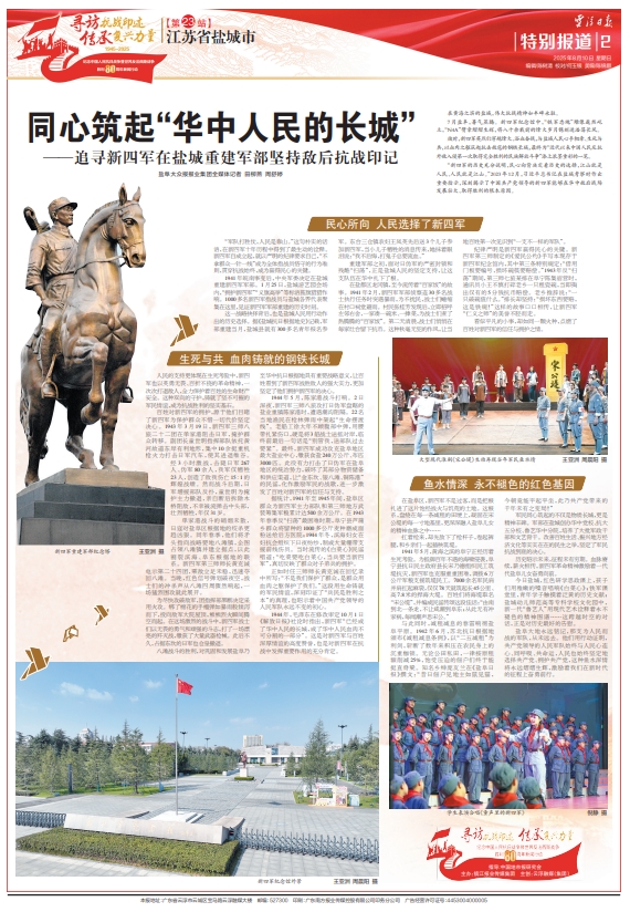 彼时,新四军英烈们穿越烽火、浴血奋战,与盐城人民心手相牵、生死与共,以血肉之躯筑起抗击敌寇的钢铁长城,最终为“近代以来中国人民反抗外敌入侵第一次取得完全胜利的民族解放斗争”添上浓墨重彩的一笔。