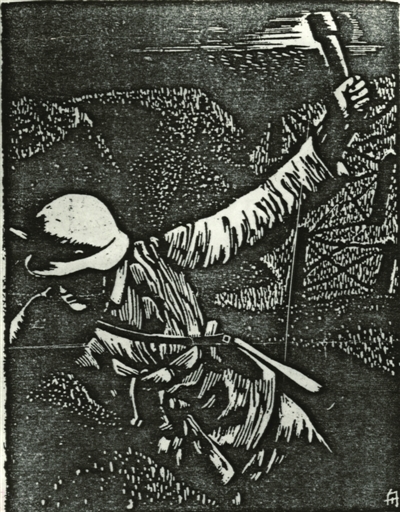 徐州画家王寄舟所作的抗日木刻《看准了敌人》。资料图片