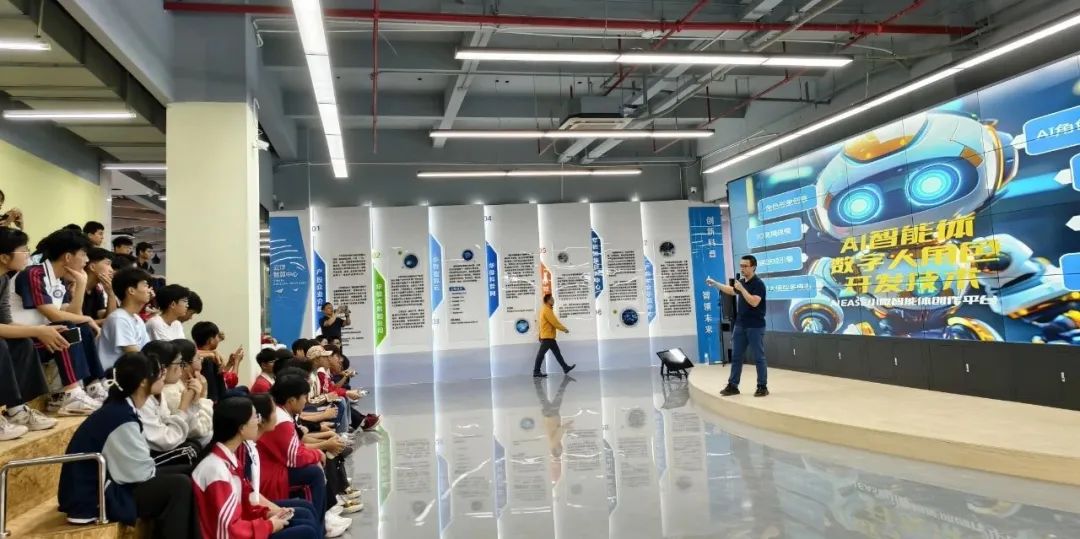 在华微云视界AIGI科普教育基地工作人员的引导下,同学们有序地到科普长廊展厅、演播室体验厅、国学创作中心、运维中心等展区的参与互动体验。随后,云安中学师生前往“中国流动科技馆巡展(云安站)”打卡,体验科技展品,了解人工智能的工作原理、感受光影和声音带来的奇幻魅力、畅享芯片的神奇世界,在玩耍中感受科学的魅力。