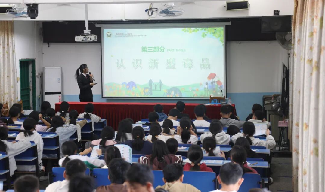 活动还设置了丰富的互动环节,“哪种是新型合成毒品?”“发现吸毒行为怎么做?”“面对黑恶势力该怎么做?”等问题引发学生踊跃抢答,实现“互动中学、学中牢记”。