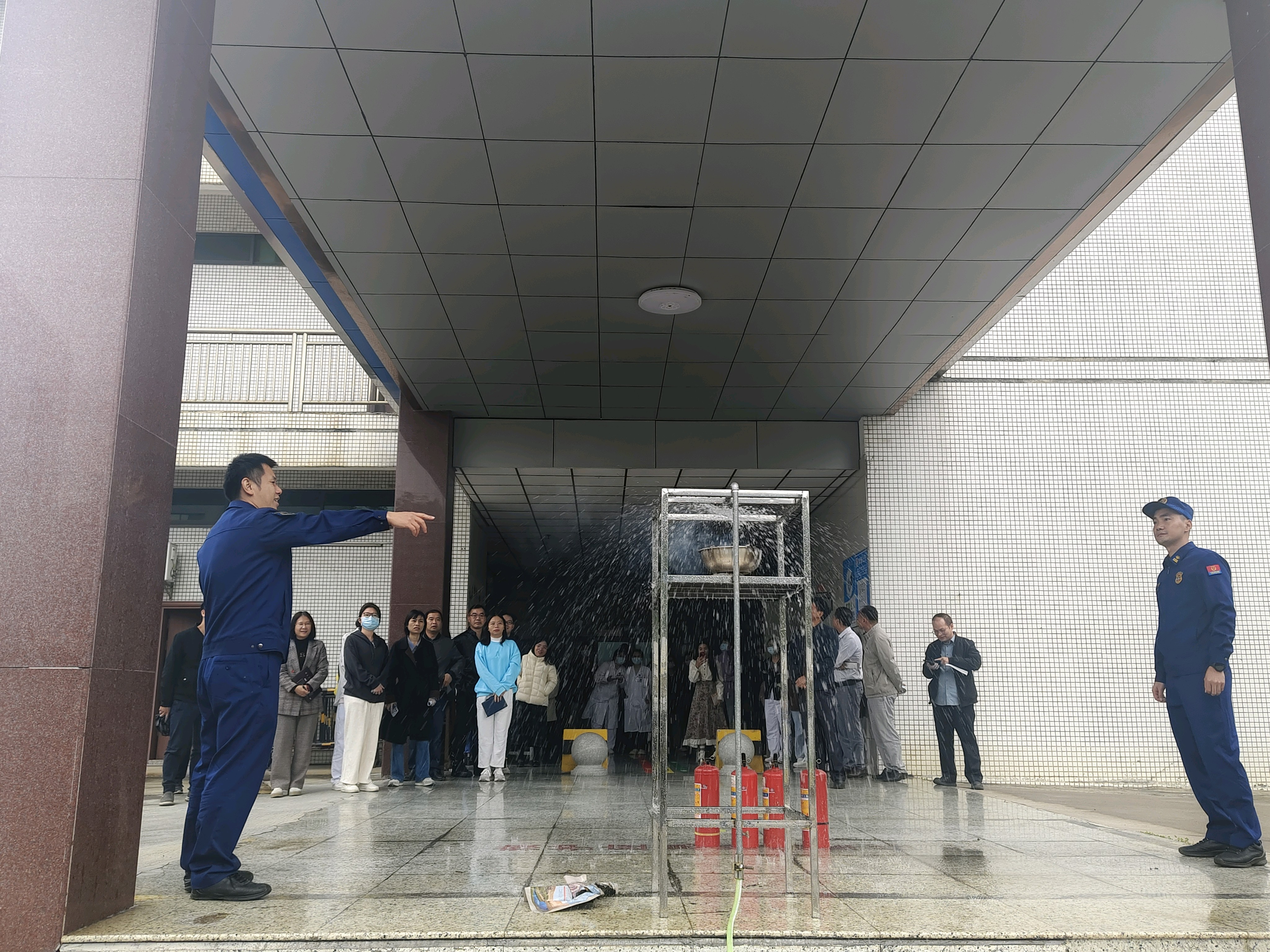 培训中,大队宣讲员首先进行了理论授课,重点讲解了如何排查整改火灾隐患、如何正确报火警、如何组织人员疏散逃生以及初起火灾的扑救方法等消防安全“四个能力”建设内容。随后,在灭火器实操环节耐心细致地讲解了干粉灭火器的构造、原理、使用范围及操作要点,并进行了标准示范。本次培训最大的亮点,在于对简易喷淋灭火原理的现场揭秘与演示。宣讲员一边操作,一边深入浅出地讲解其背后的科学原理:“这套简易系统模拟了专业自动喷淋系统的核心工作机制——热敏触发与局部精准灭火。它虽然简易,却能在火势初起的‘黄金一分钟’内,有效降低火场温度、延缓火势蔓延,为人员疏散和专业救援争取到至关重要的时间。”这一直观、生动的演示,将复杂的消防原理化繁为简,引得在场医护人员赞叹不已。