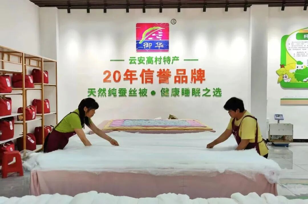 农历新年前夕,位于云浮市云安区高村镇的云浮市御华茧丝绸有限公司的生产车间一片繁忙。一批批精美的桑蚕丝被打包发往粤港澳大湾区及海内外市场,成为年货市场上的“抢手货”。这家扎根云安区蚕桑产业多年的龙头企业,正通过科技赋能、认证加持和产业联动,让千年蚕桑技艺焕发新活力,成为“广货”出海的亮丽名片。